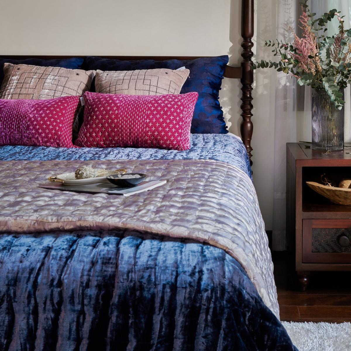 I love the deep navy of the silk pillow for adding a touch of sophistication and richness to a bedroom. It works particularly well in modern, minimalistic interiors where it can serve as a subtle statement piece, or in luxe eclectic schemes paired with textured layers and metallic accents. The smooth silk fabric not only elevates the look but also provides a luxurious feel that’s ideal for a restful sleep. Styling tips include mixing it with lighter tones or patterned bedding to create contrast, or layering with plush throws and cushions for a more opulent vibe. This pillow is versatile enough to suit both contemporary and classic bedroom settings, making it a practical yet stylish choice.