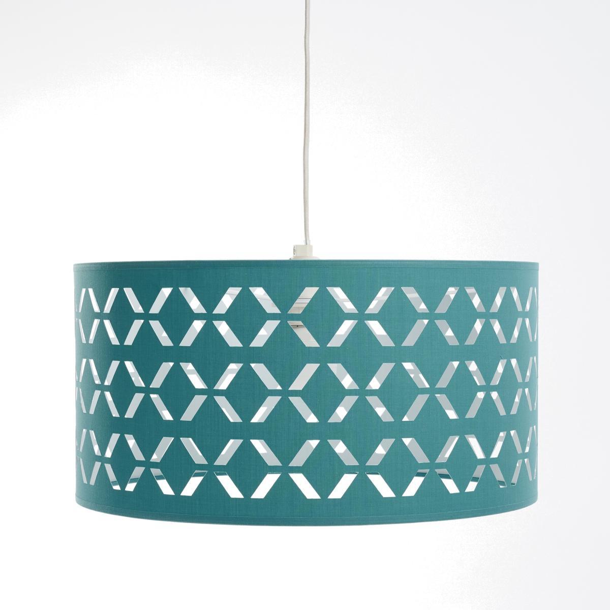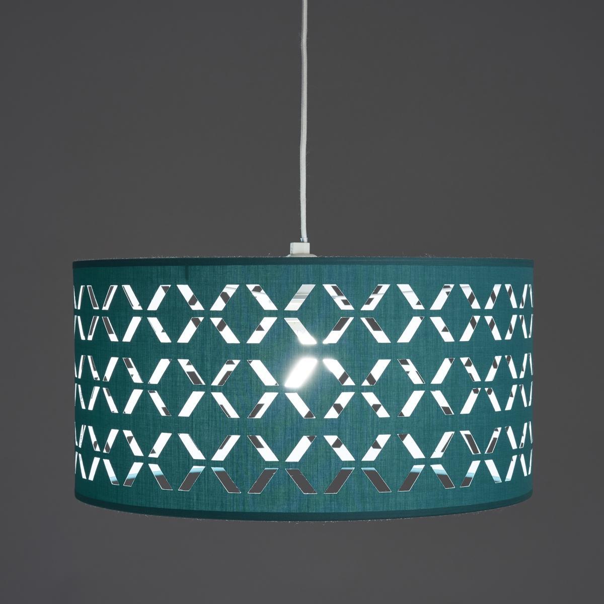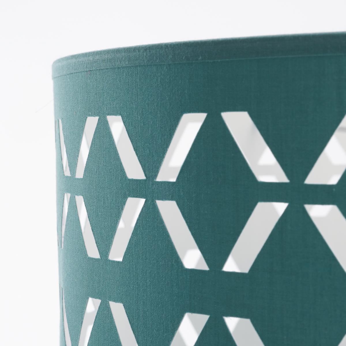 This openwork lightshade with graphic patterns creates a warm atmosphere with a diffused light.