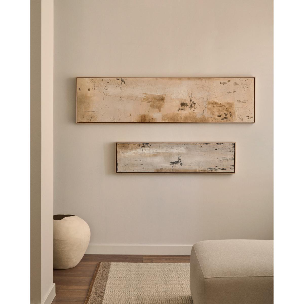 I love this dark beige abstract picture for its subtle sophistication and versatility. Its neutral tones make it a great choice for both contemporary and more traditional interiors, adding warmth without overpowering the space. Given its elongated shape, it's ideal for hallway walls, above a sofa, or even as a feature piece in a dining area. Practical styling tips include pairing it with minimalist furniture to let the artwork stand out, or combining it with other textured decor in similar tones for a layered, cohesive look. It also works well in spaces with natural elements like wood or woven textiles, enhancing a calm and balanced atmosphere.