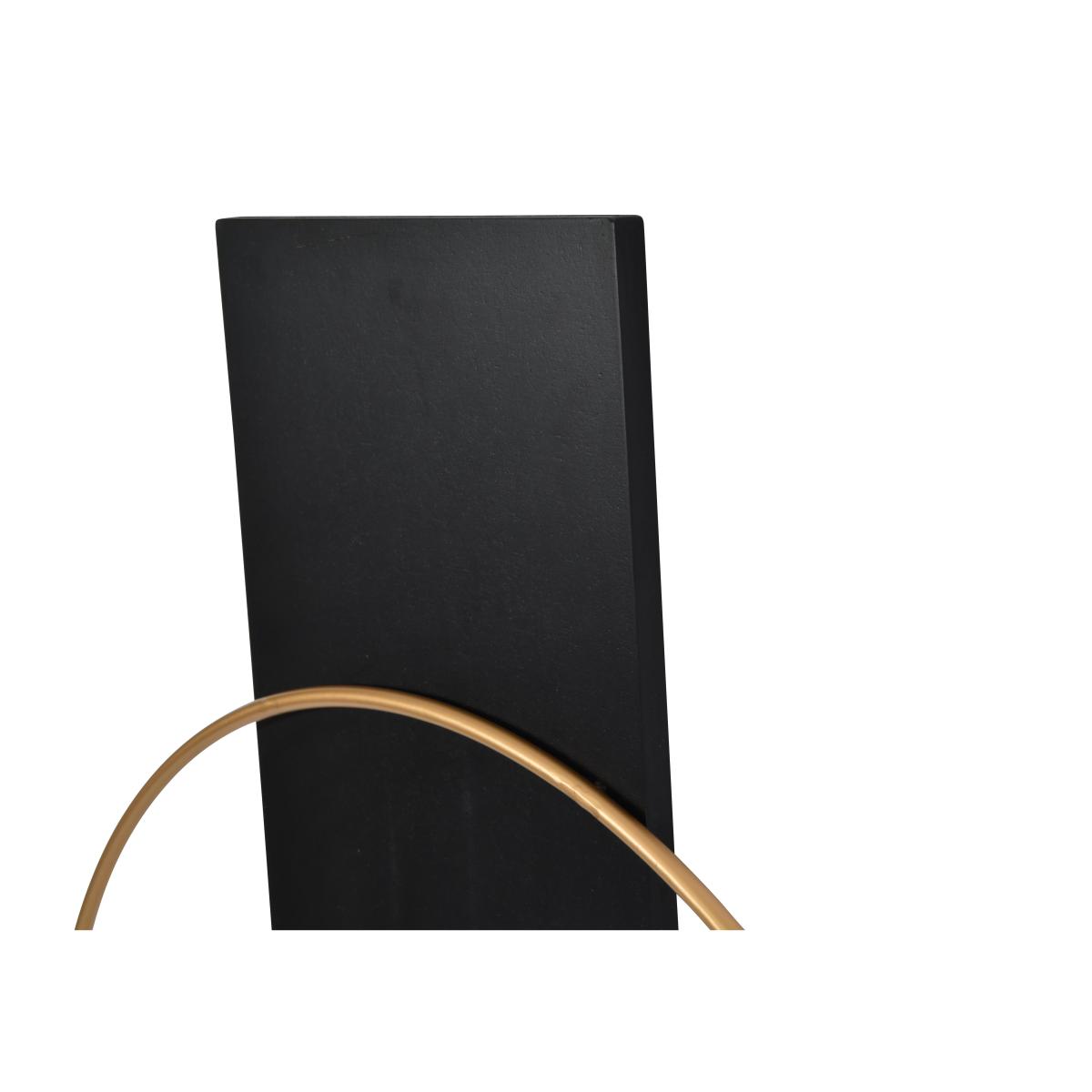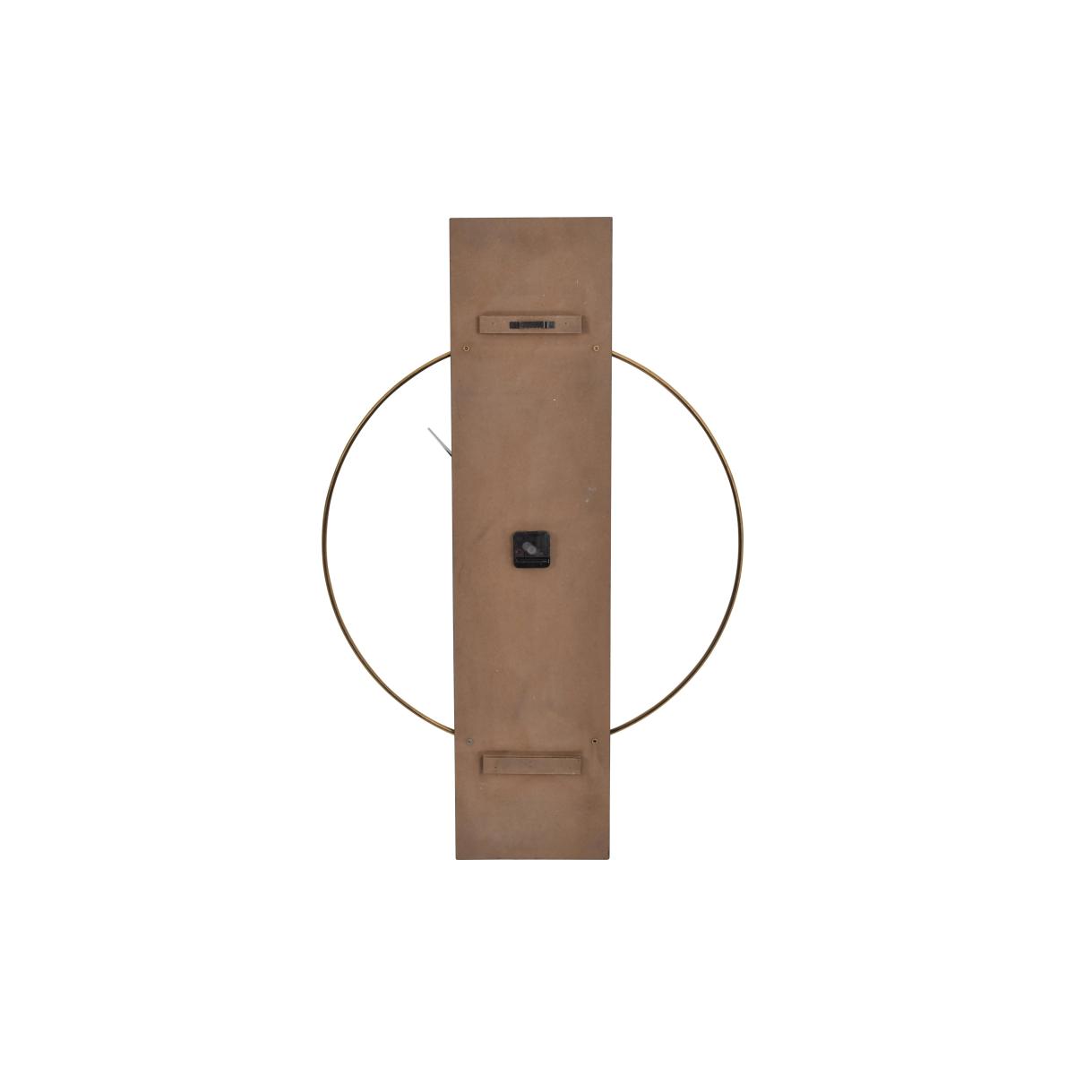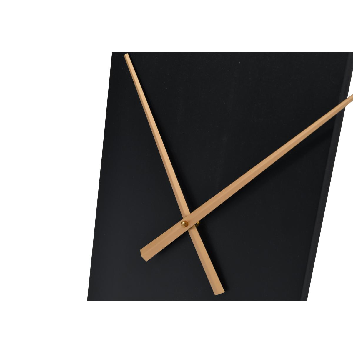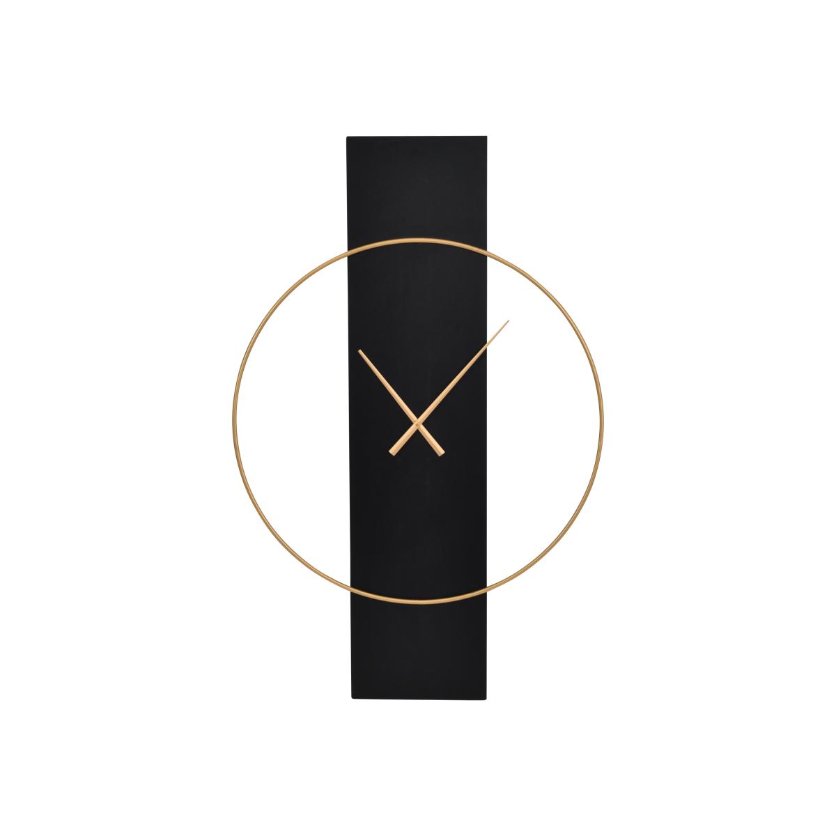 Sleek and minimal, this modern wall clock uses simple linear forms to create a clock face in a very on-trend colour palette of black and gold. Why you'll love it. This eye-catching wall clock proves that less is more. Modern minimalist style. Gold-coloured clock frame and hands are mounted on a sleek black panel. Suits urban and industrial interiors. This wall clock is part of the Furniture Village home accessories collection. What you need to know. Made of wood and iron. For indoor use only. Do not apply cleaning products directly onto the surface. Do not use cleaning products containing wax. Requires 1 x AA battery, not included. Change the battery twice a year. Dimensions. Height: 100 cm (40 in). Depth: 4 cm (2 in). Width: 65 cm (26 in).