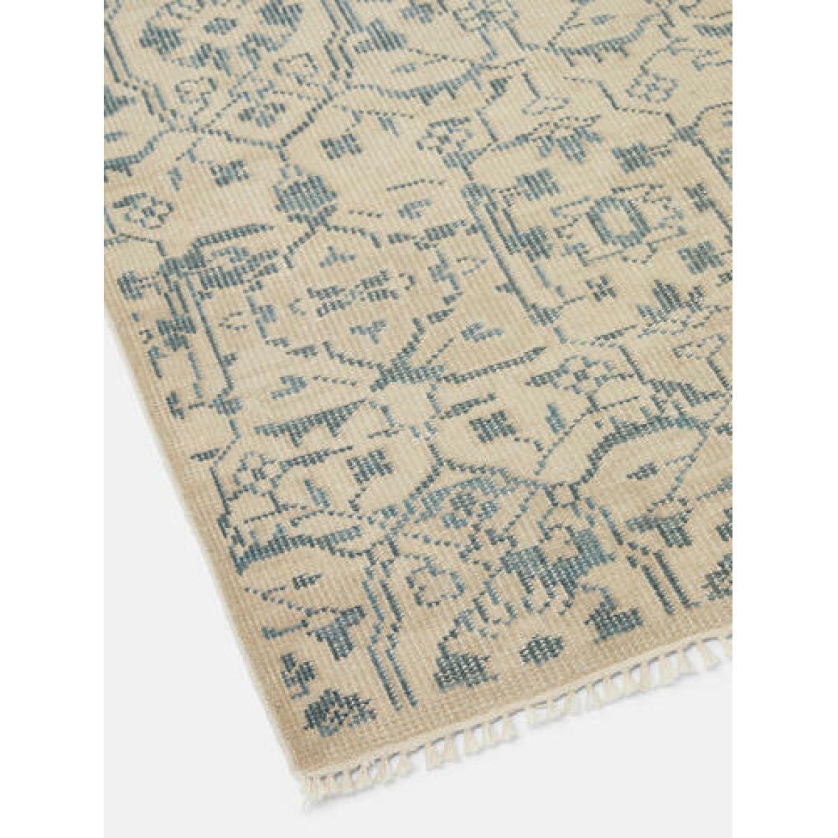 Our Silvanus rug is inspired by the timeless, woven wool stylesfound throughout the bedrooms at Babington House. Hand-knotted in. India by skilled artisans, each one takes up to six months to make,with 22 knots per square inch making it feel super-softunderfoot. Traditional-style rug in natural and blue tones. Hand-knotted with 22 knots per square inch. 100% wool pile. Made in India. Inspired by Babington House.
