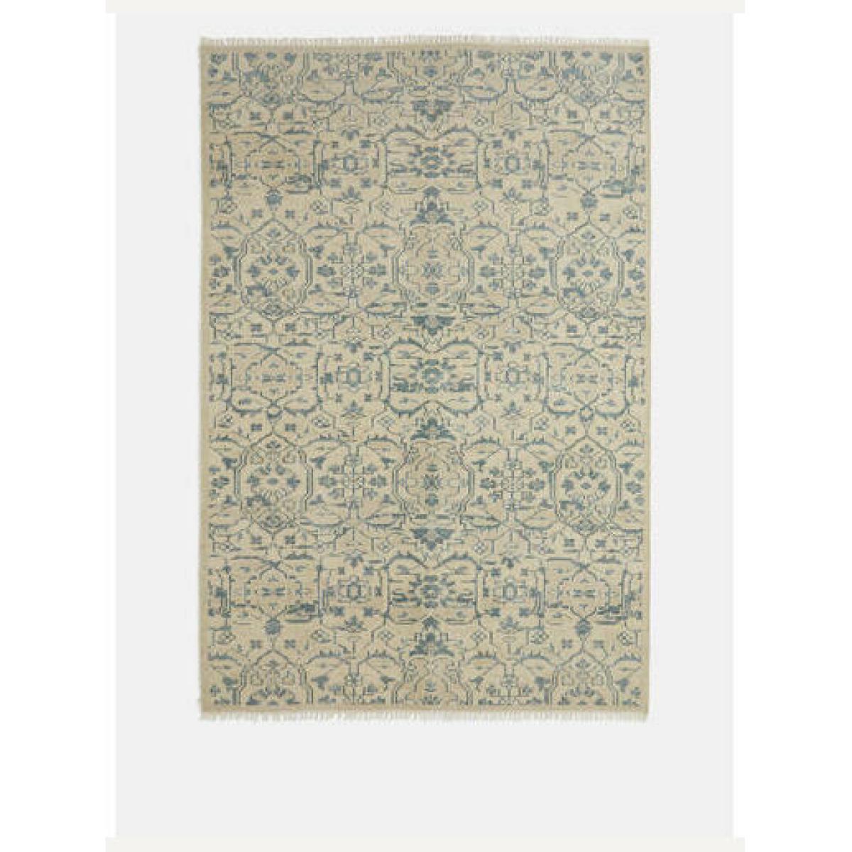 Our Silvanus rug is inspired by a damask motif found in Babington House. Hand-knotted in India by skilled artisans, each rug takes up to six months to craft with 22 knots per square inch for extra hardwear and comfort. Layer under a sofa or table for an instant pop of pattern and texture. Traditional-style rug in natural and blue tones Natural and rust tones Hand-knotted in India 22 knots per square inch 100% wool pile Designed in-house Inspired by a damask found in Babington House