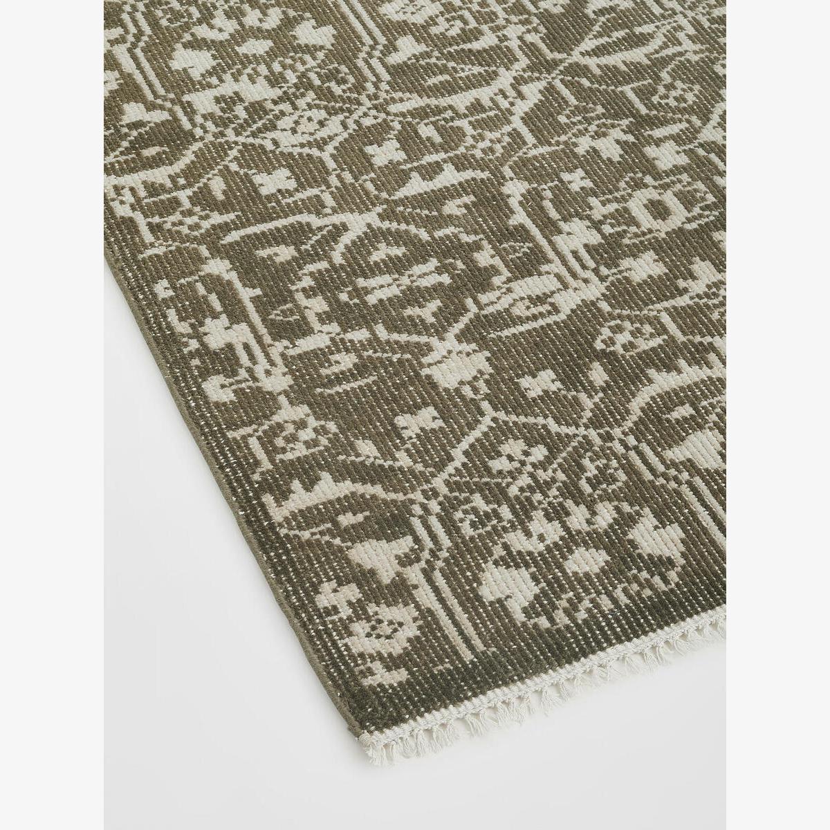 I love this one because of its versatile olive tone and understated pattern, which can add warmth and texture to a range of interiors. It works particularly well in both modern and traditional settings, adding a touch of relaxed sophistication without overpowering the space. Practical styling tips include pairing it with neutral or earthy furnishings to enhance its colour, and layering it over other textiles like throws or cushions for added depth. Its sizeable dimensions make it ideal for larger living areas or open-plan spaces, providing a cosy anchor for furniture arrangements.