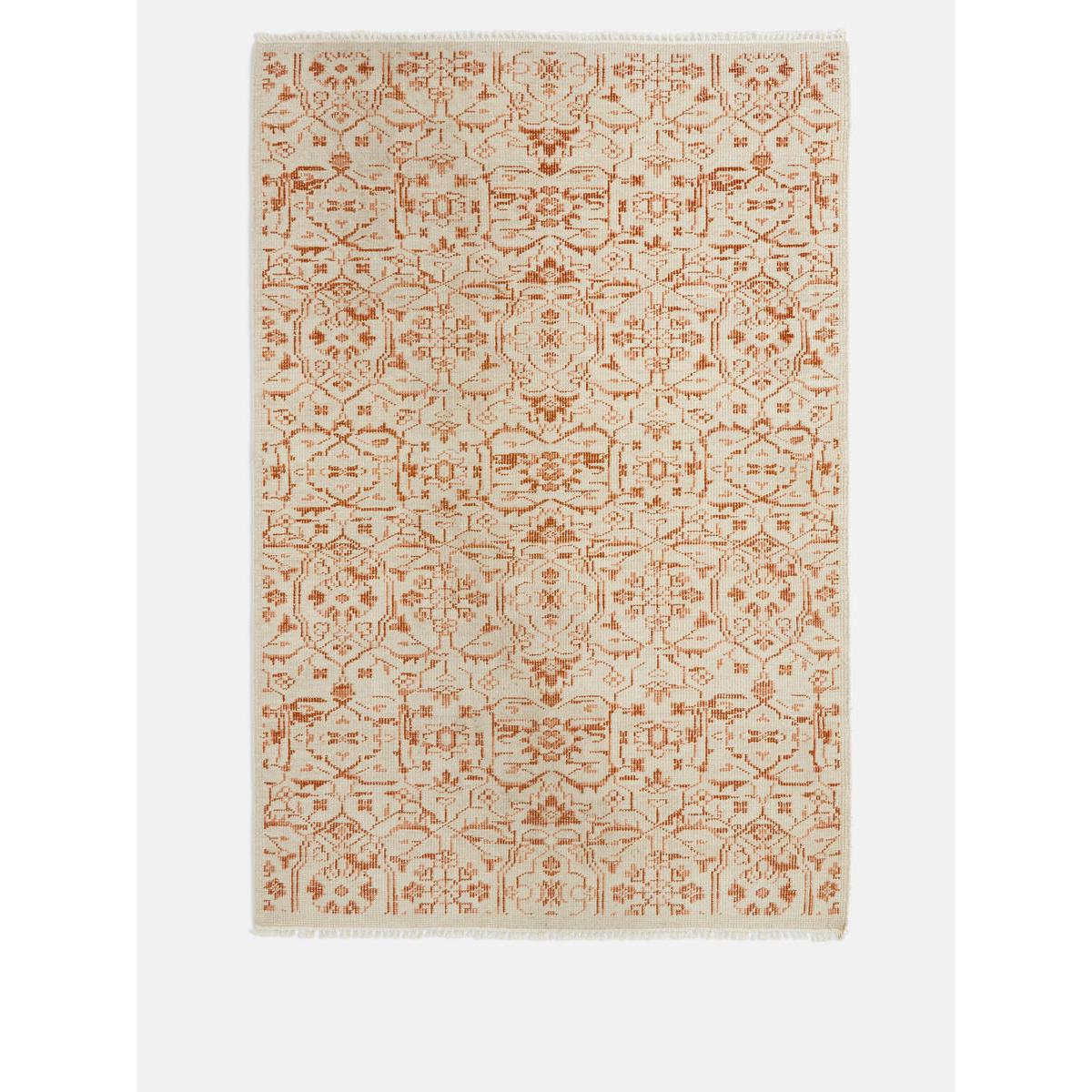 Our Silvanus rug is inspired by the timeless, woven wool stylesfound throughout the bedrooms at Babington House. Hand-knotted in. India by skilled artisans, each one takes up to six months to make,with 22 knots per square inch making it feel super-softunderfoot. Traditional-style rug in natural and rust tones. Hand-knotted with 22 knots per square inch. 100% wool pile. Made in India. Inspired by Babington House.