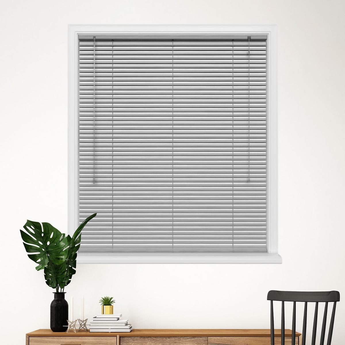 The silver 25mm venetian blind is made from lightweight aluminium, the slats can be tilted, raised and lowered with ease. Perfect for darkening and adjusting the privacy to your room using the tilt wand included. The brackets allow you to either ceiling or wall fix your blind.