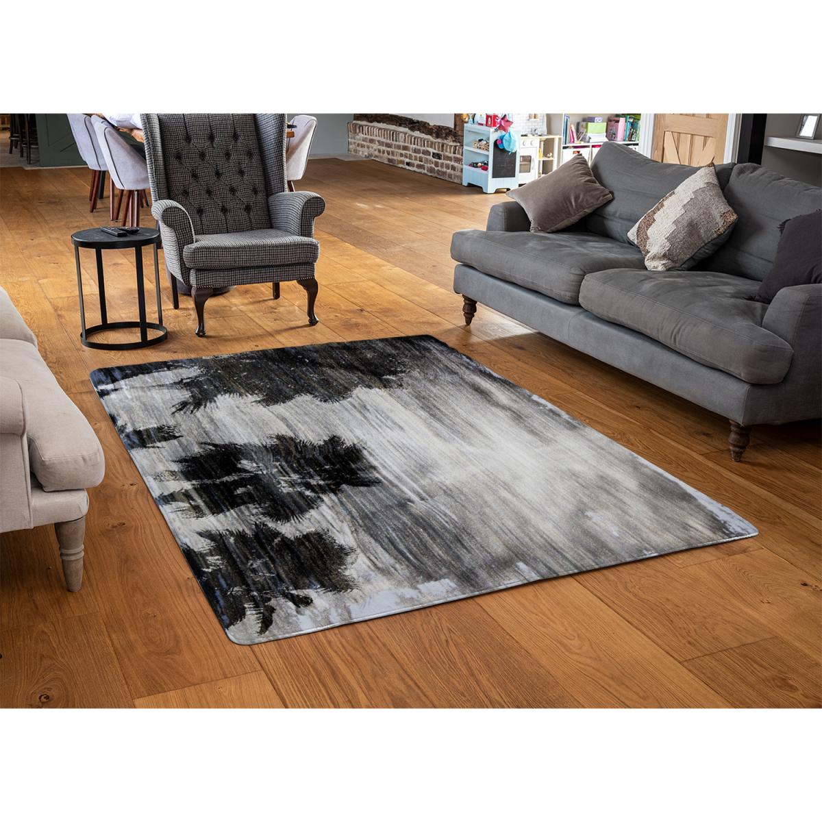I love this rug for its striking monochrome palette and contemporary palm design, which adds a touch of effortless sophistication to any space. It works particularly well in modern or minimalist interiors, where its bold pattern can serve as a focal point, but it can also complement eclectic or industrial styles. For styling tips, consider pairing it with sleek furniture in neutral tones to let the pattern stand out, or layer it over hardwood or polished concrete floors for a refined look. Thanks to its muted colour palette, it’s also versatile enough to adapt to various colour schemes, making it a practical yet stylish choice for living rooms, bedrooms, or even a hallway.