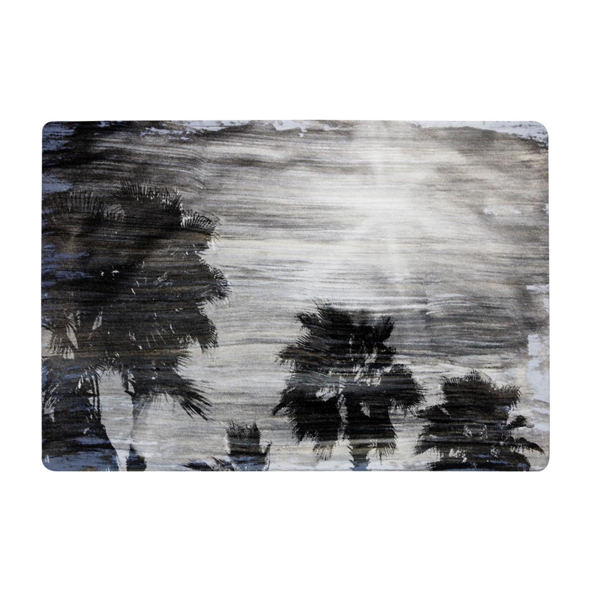 Silver And Black Palm Rug - Black / 150cm