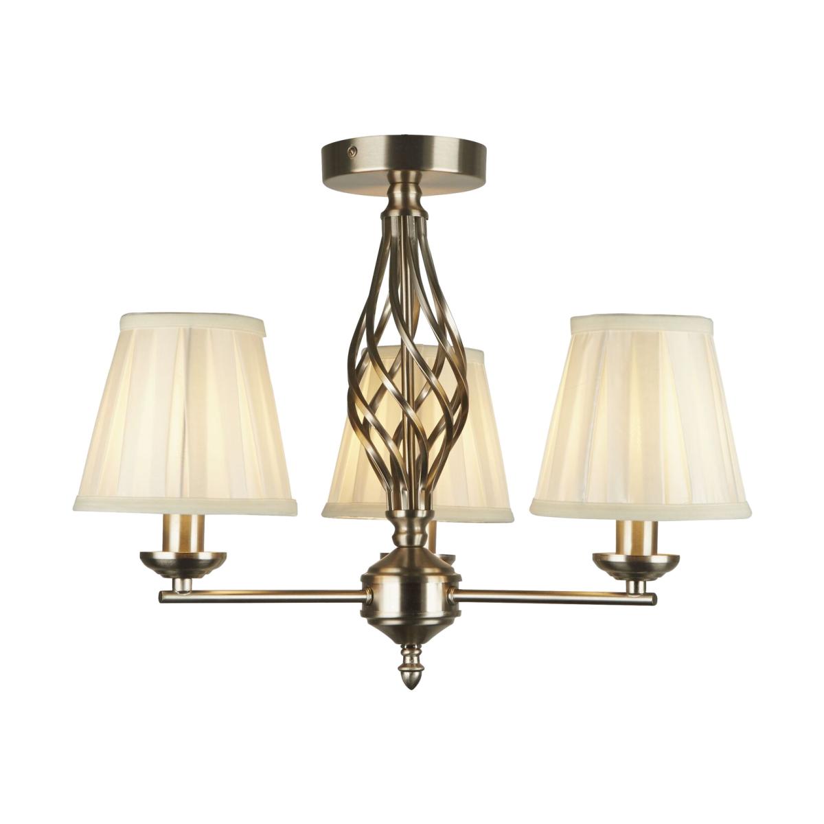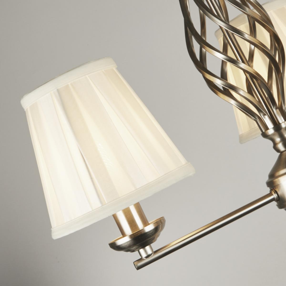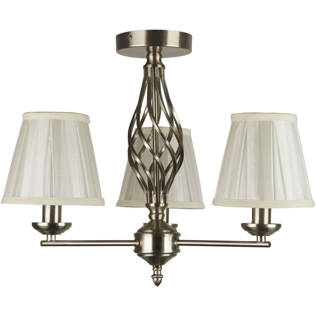 This classically stylish ceiling light is a simple way to update any room. With 3 white pleated shades on a satin silver intricate frame, this ceiling pendant will work with many decor styles.