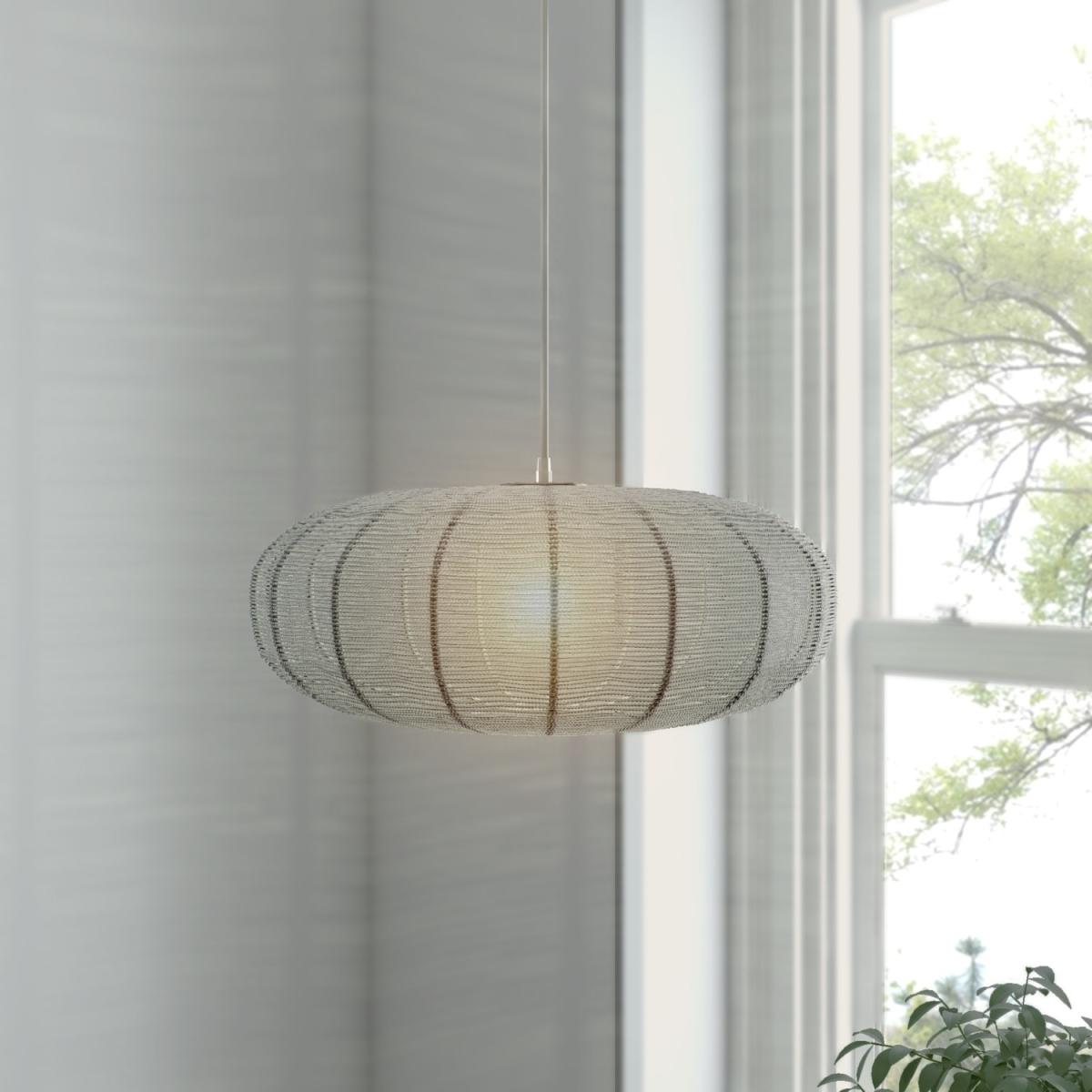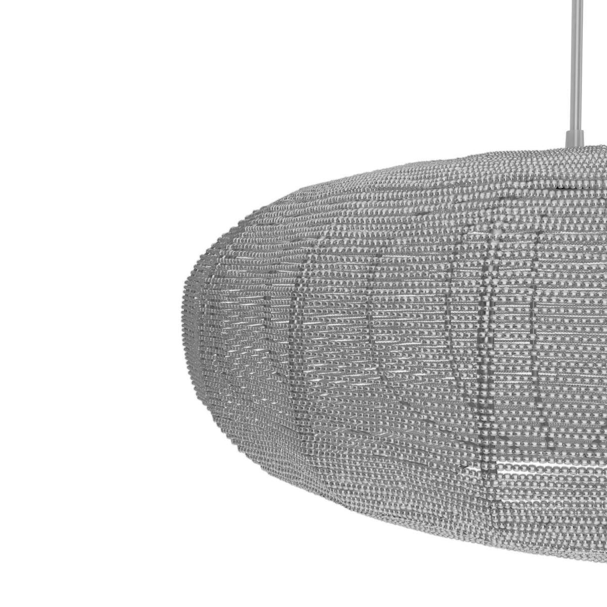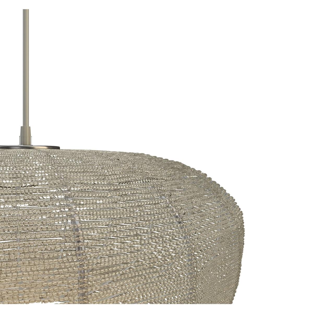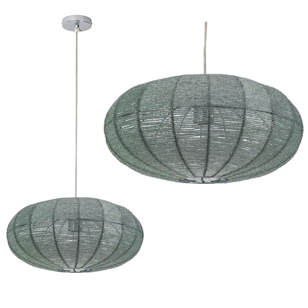 Features we love Silver sphere pendant light with glass beading. The perfect feature in any living or dining room Height adjustable wire suspension with clear flexE2. 7 and LED bulb compatible can be dimmed All about me. Add a touch of elegance to your home with this silver Rochelle pendant light. It closely resembles a modern lantern with its spherical shape and elaborate detailing. Suspended from a polished chrome plate by a clear cable its neutral tones means it'll co-ordinate with all décor and furnishings. When lit or unlit it creates a stunning lighting effect thanks to its intricate glass beading and metal wire structure. It's beautifully understated very attractive and a welcoming addition to any space whether it's a hallway bedroom or living room. It's dimmable and LED compatible so you are free to add your preferred lighting effect. Need to know. Overall dimensions. W40 x D40 x H120 cm Shade dimensions. W40 x D40 x H18 cm Fixture design. Pendant light Number of lights. 1 Bulb type. E27 GLS Maximum wattage. 40W Colour. Chrome and Silver Finish. Chrome and clear PVC cable Material. Metal (structure) and glass LED compatible. Yes Dimmer compatible. Yes Bulb included. No Fixings supplied. Yes Assembly required. Yes Warranty. 1 year.