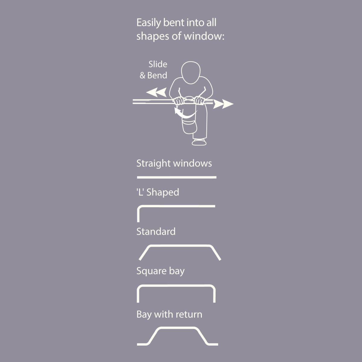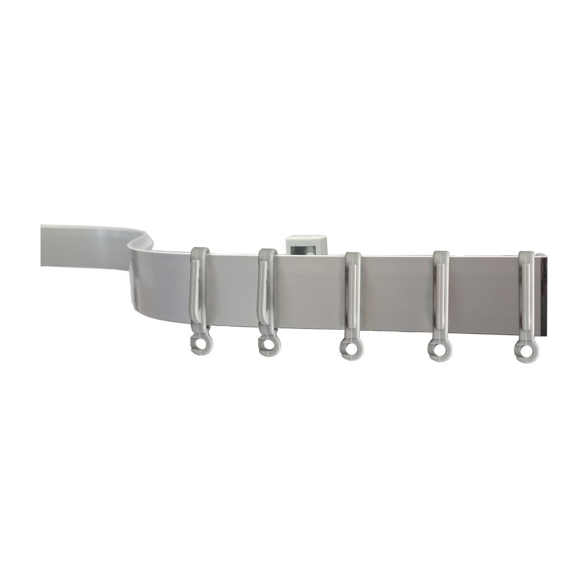 Ideal for all window types including bay windows, this flexible aluminium curtain track can easily be bend to shape to suit your requirements. This track is crafted in a modern silver tone and comes complete with matching silver gliders and chrome ends for an elegant finish. Supplied with all fixings included, this curtain track is easily installed and is ideal to provide a modern edge to your decor. Please note: tracks with a length of 250cm and over come in two pieces with a joiner.