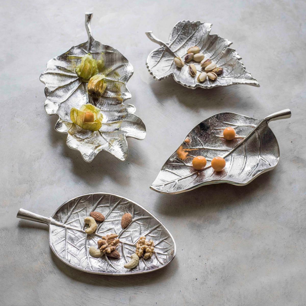 Inspired by seasonal Autumn leaves, this unique silver dish is a subtle and stylish way to include a botanical theme. With embossed details and stems, this dish would be equally stunning left empty on a tabletop, used to serve snacks or filled with small possessions or jewellery.
