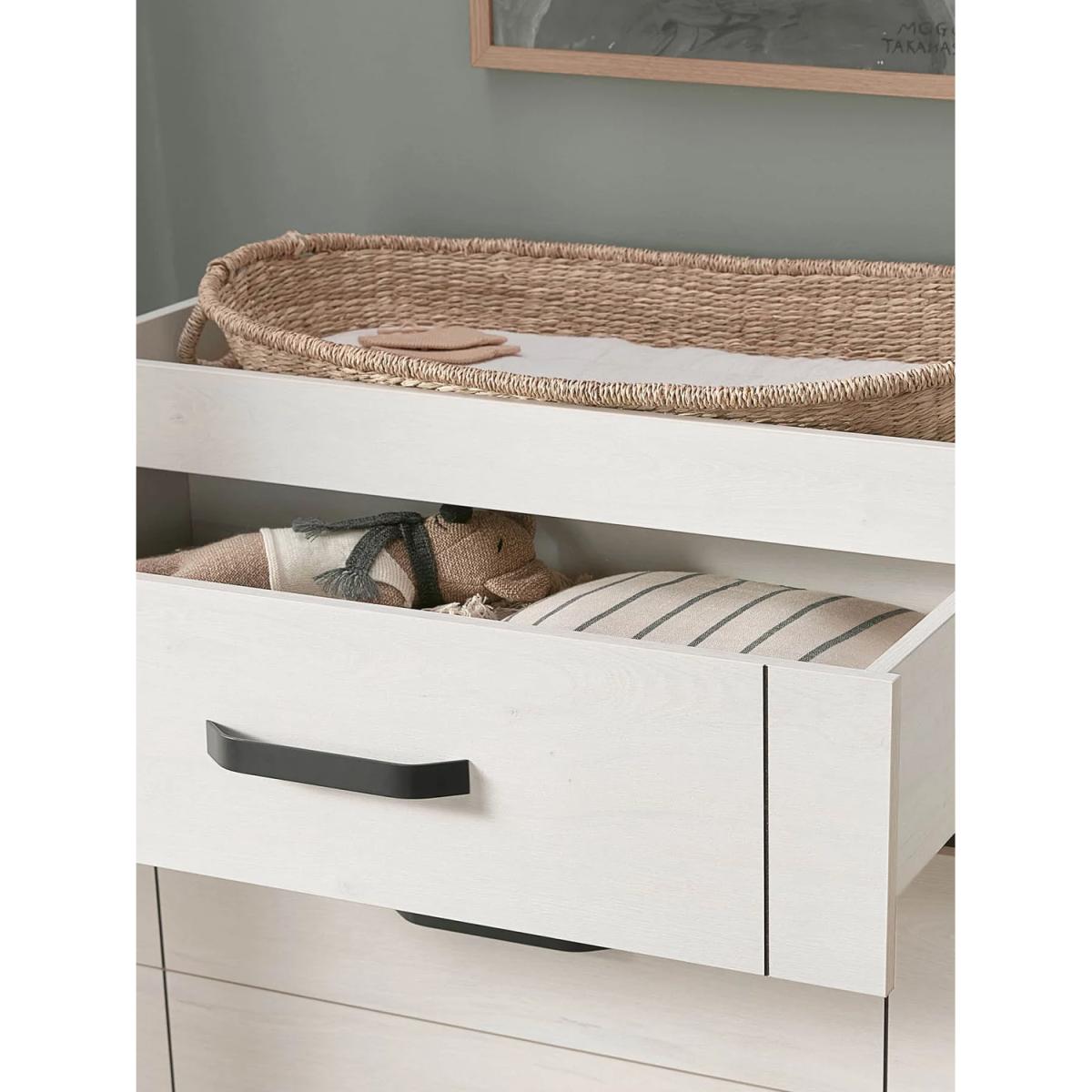 Calming and stylish, the Silver Cross Alnmouth nursery furniture collection has a washed oak finish for a modern seaside-inspired vibe. Cotbed: The multi-stage cot bed grows with your child, transforming into a toddler bed as they get older. Growing with your child from newborn to toddler stage (approximately 4 years old), the Alnmouth cot bed will suit every stage of your little one’s development with its 3 adjustable base heights. Dresser: Calming and stylish with its washed oak finish and contemporary black handles, this dresser has a modern vibe to suit any home. It has plenty of storage, with an integrated changer top for nappy changes. The Alnmouth dresser has 3 deep, soft-close drawers with plenty of storage for keeping all of the baby's essentials neatly stored and the integrated changer top provides a handy spot for nappy changes.