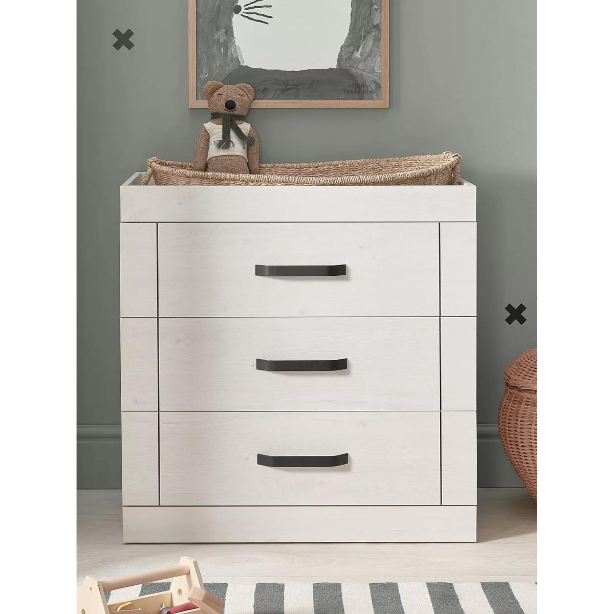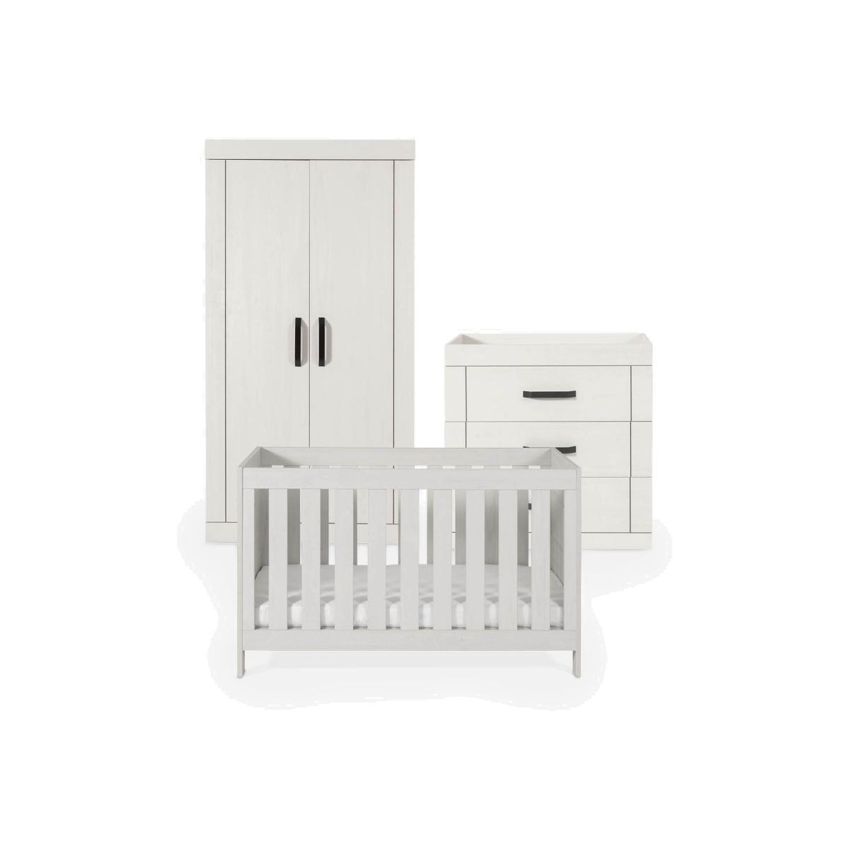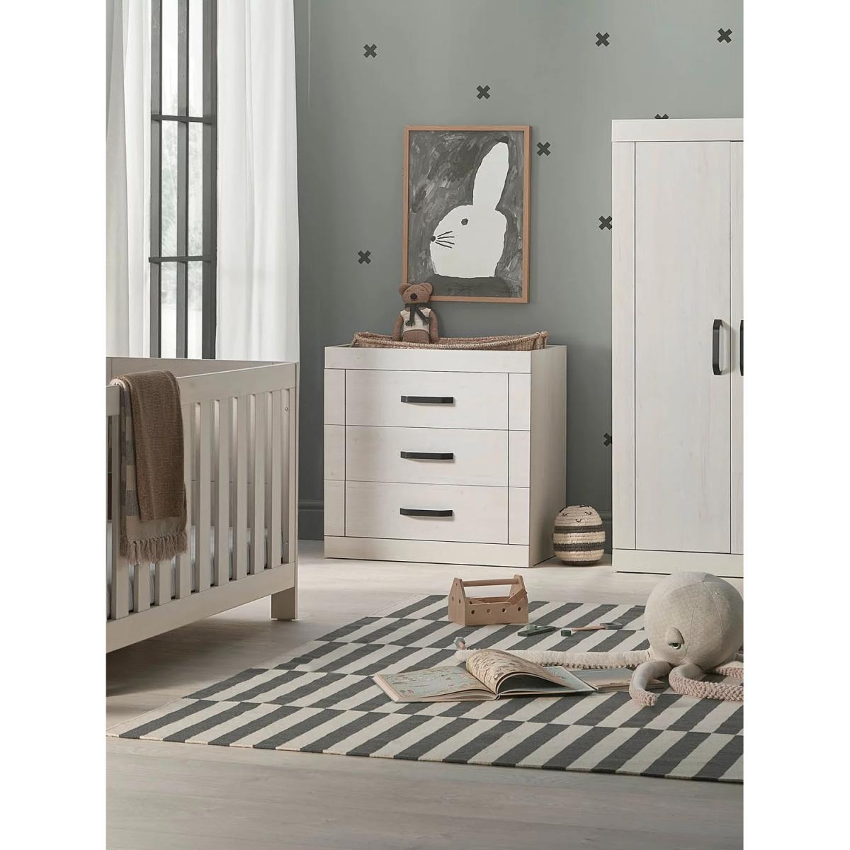 Calming and stylish, the Silver Cross Alnmouth nursery furniture collection has a washed oak finish for a modern seaside-inspired vibe. Cotbed: The multi-stage cot bed grows with your child, transforming into a toddler bed as they get older. Growing with your child from newborn to toddler stage (approximately 4 years old), the Alnmouth cot bed will suit every stage of your little one’s development with its 3 adjustable base heights. Dresser: Calming and stylish with its washed oak finish and contemporary black handles, this dresser has a modern vibe to suit any home. It has plenty of storage, with an integrated changer top for nappy changes. The Alnmouth dresser has 3 deep, soft-close drawers with plenty of storage for keeping all of the baby's essentials neatly stored and the integrated changer top provides a handy spot for nappy changes. Wardrobe: The full-size wardrobe has lots of storage space for those nursery essentials. Alnmouth's full-size wardrobe includes a twin hanging rail with plenty of room for baby's clothes and spacious shelving provides space for keeping other essentials tidy. The stylish, washed oak finish double doors are complemented by contemporary black handles, and the soft-close doors mean there are minimal disturbances during the day and night.