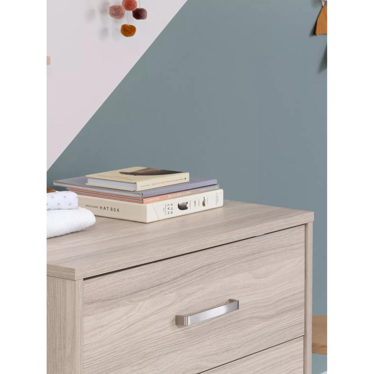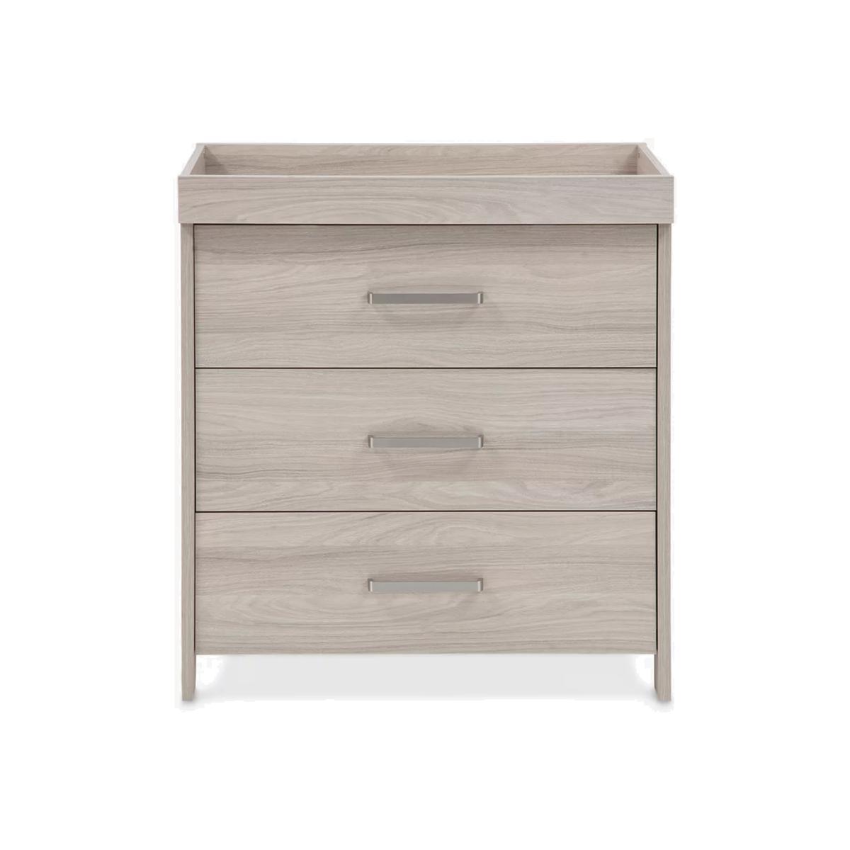 Crafted from high quality warm oak veneer, the Ascot Dresser from Silver Cross has three generous drawers with stylish satin chrome handles. The changer top provides a convenient space for nappy changes and can be removed as your little one grows, leaving a stylish set of drawers. This dresser is part of the Ascot nursery set from Silver Cross which all have a clean, minimal design. Pair with the matching cotbed and wardrobe to complete your nursery.