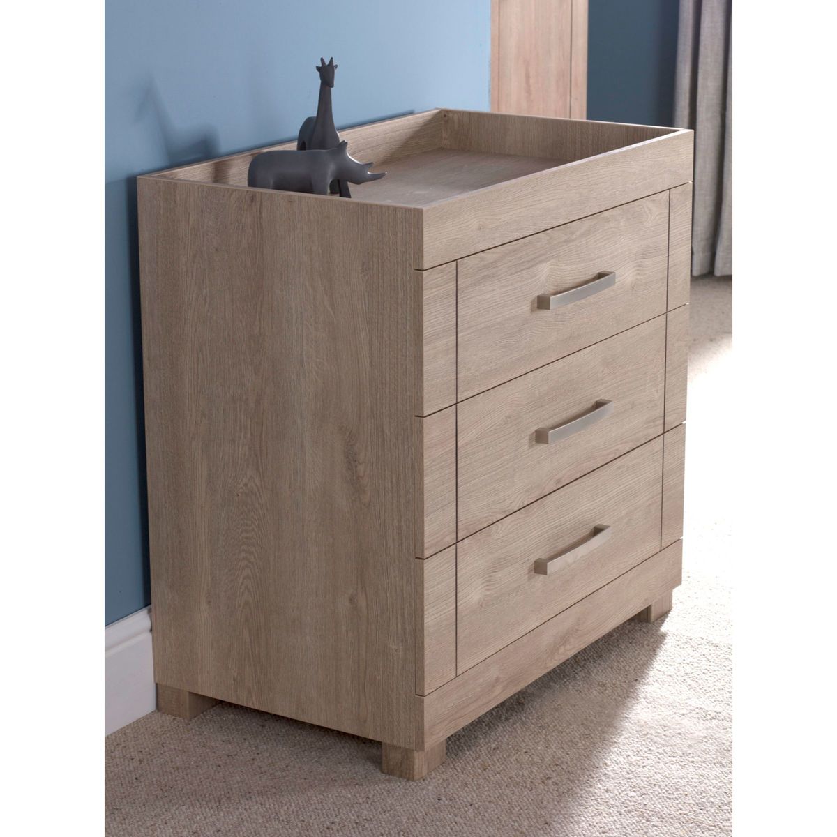 With elegant yet timeless styling and construction, this Camberwell dresser comes with an integrated changer top, a stunning textured oak finish and can be matched with the Camberwell cotbed and wardrobe for a gorgeous complete nursery. Main features. Three generous, deep drawers that are soft close for a quiet nursery area and plenty of storage space for baby clothes and changing supplies when using the changing top. Satin chrome handles for timeless style. Integrated changing top.