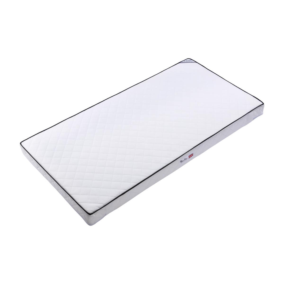 The classic cot bed mattress from Silver Cross is hypo-allergenic and includes 190 individual pocket baby springs to provide flexible and targeted support. It actively responds to your child's changing shape and has unique square-shaped corners to minimise gaps between the mattress and cotbed, keeping little arms and legs are safe.