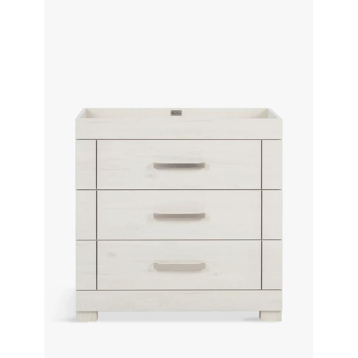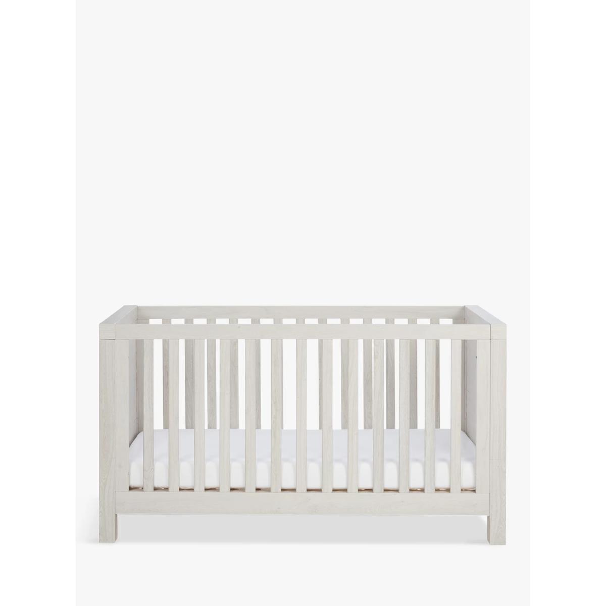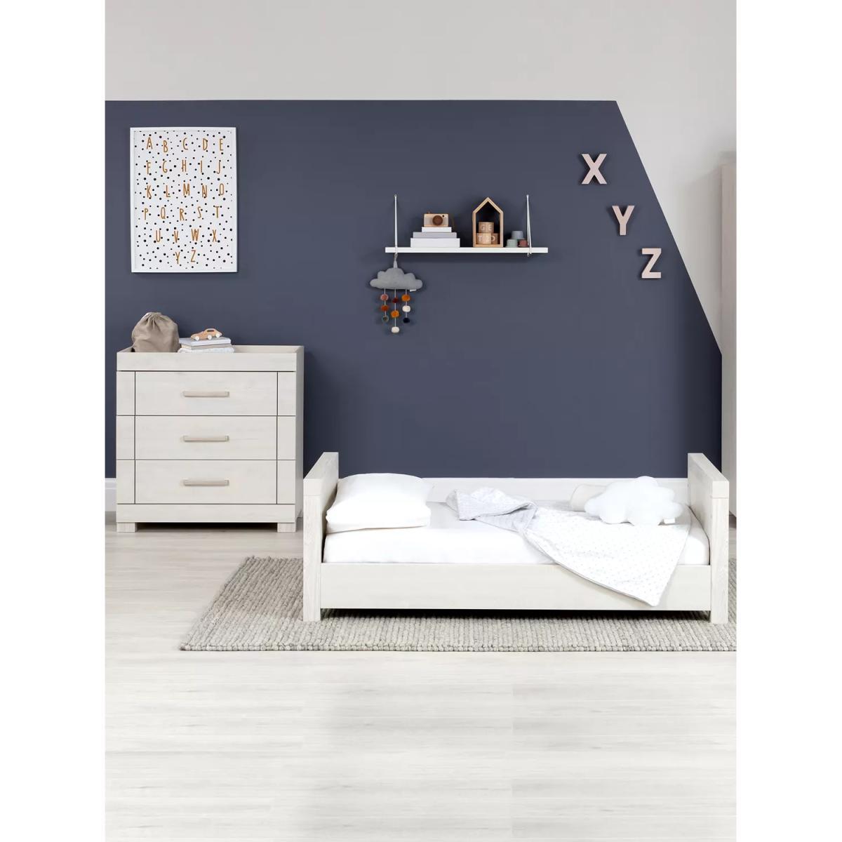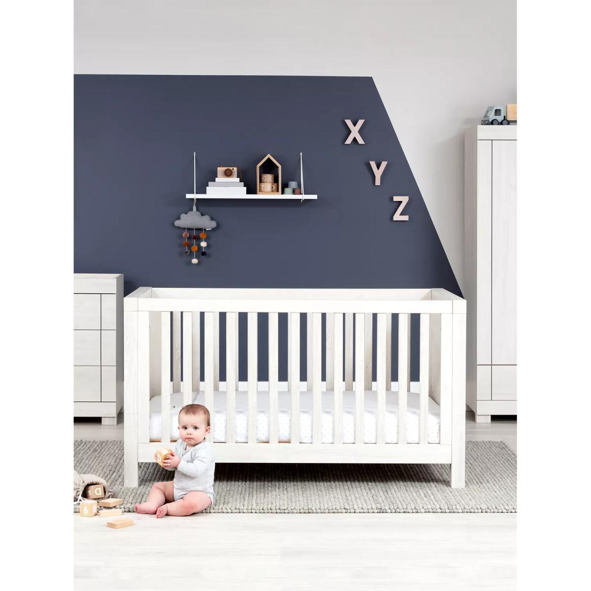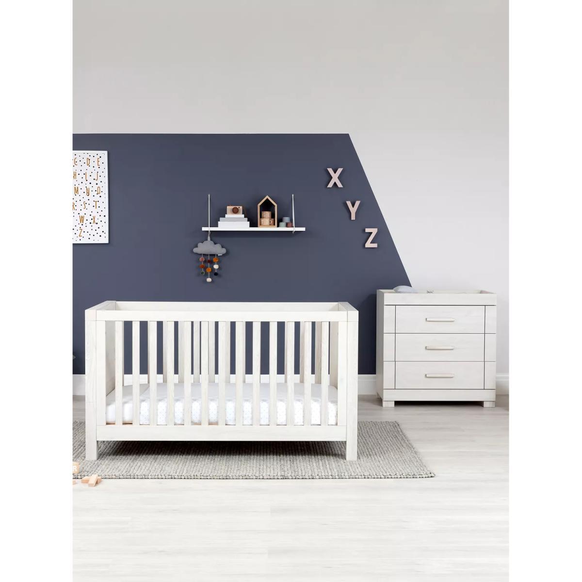 The Coastline furniture set from Silver Cross creates a relaxed and calming nursery. The textured washed oak finish provides a tranquil natural palette for baby’s first bedroom. With a modern washed oak finish, the Coastline Cotbed grows with your baby from birth to toddler. In cot mode, it has three adjustable height positions for every stage of your baby’s development. Once your little one is old enough, the cot can easily be transformed into a toddler bed suitable to approximately four years of age. The matching Coastline Dresser has three generously sized soft-close drawers with stylish satin chrome handles, while the integrated changer top provides a convenient space for nappy changes. Pair with the matching wardrobe to complete your nursery. The cotbed is recommended for use with a 140 x 70cm mattress (sold separately). The cotbed's mattress heights are as follows: Lowest position: 30cm Mid position: 49cm Highest position: 62cm