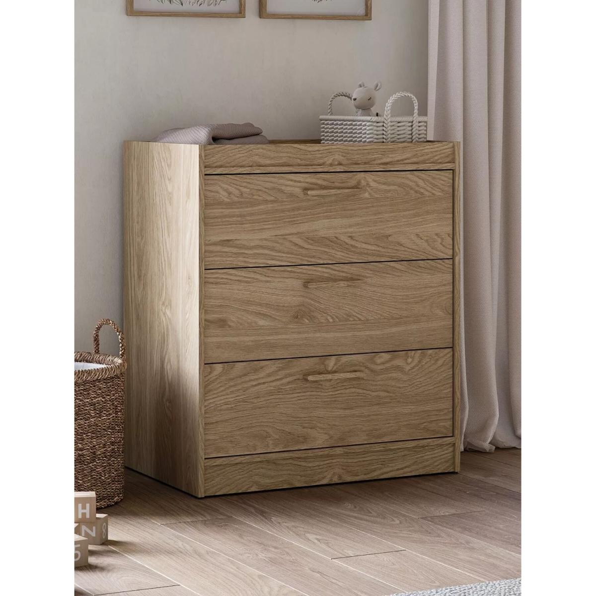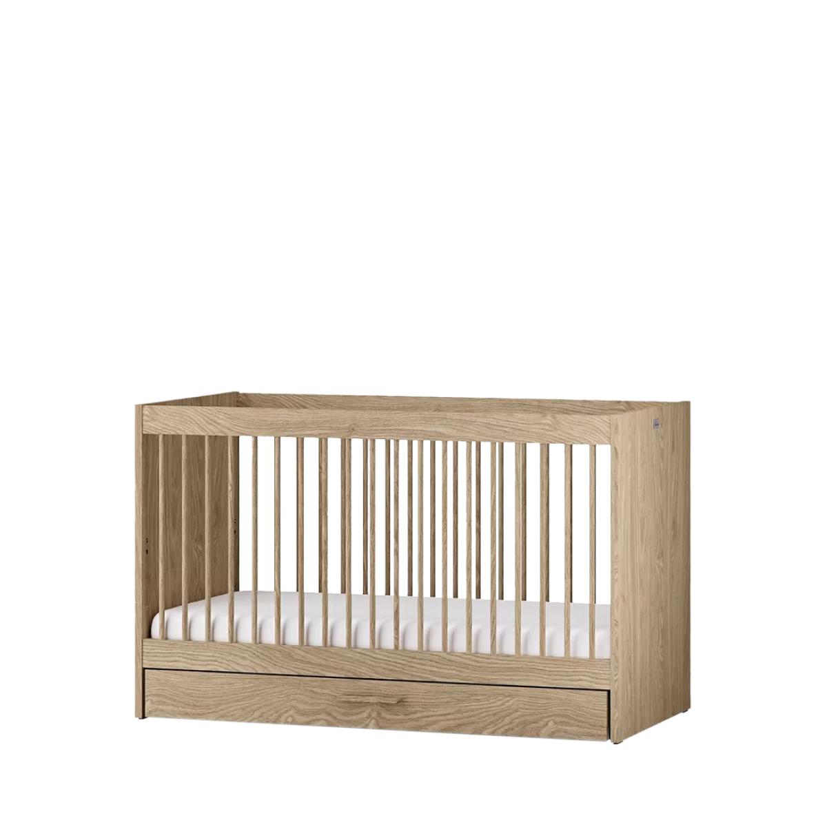 Transform your baby's nursery into an elegant and sophisticated space with the Silver Cross Geneva 3-piece furniture set. Crafted for durability and longevity, Geneva nursery furniture features a natural oak finish with textured detailing and coordinating handles, creating a soothing, Scandi-inspired look that you’ll love for years to come. This complete collection includes everything needed for your child's first bedroom – a convertible cot to toddler bed with under-bed storage – perfect for smaller spaces and box rooms, a changing dresser, and a spacious wardrobe. Cot to toddler bed The Geneva cot bed will suit every stage of your little one’s growth from their first night at home up to their toddler years. With three mattress heights, the cot bed should be used in the highest setting for your newborn and lowered gradually as they start to roll, sit and stand. When the cot railings are no longer needed, they can be easily removed to leave behind a toddler bed using the same base. It also features a handy under-bed drawer that’s perfect for smaller rooms, with plenty of room for storing bedding and baby’s essentials. All cot beds are compatible with the Silver Cross True. Fit™ mattress collection. Dresser Keep your nursery organised in Geneva’s spacious three-drawer dresser, with plenty of room for clothing and bedding. The integrated changer top is perfect for nappy and outfit changes, and can be used as extra storage space for years to come. Wardrobe The Silver Cross Geneva wardrobe is the perfect spot to display your baby’s clothing, with two hanging rails and an overhead shelf providing lots of space. As your baby grows, the lower rail can be easily removed to make space for larger garments.
