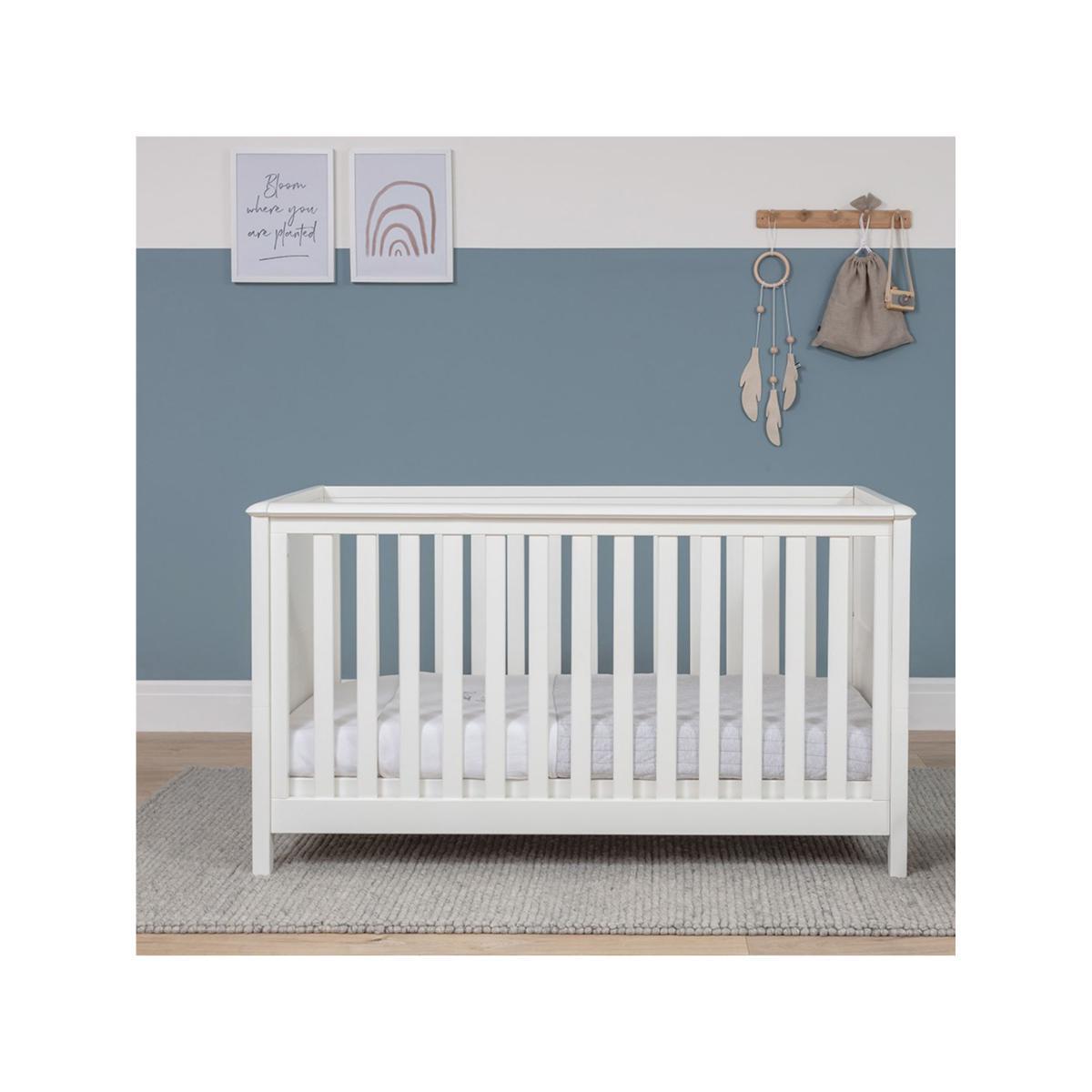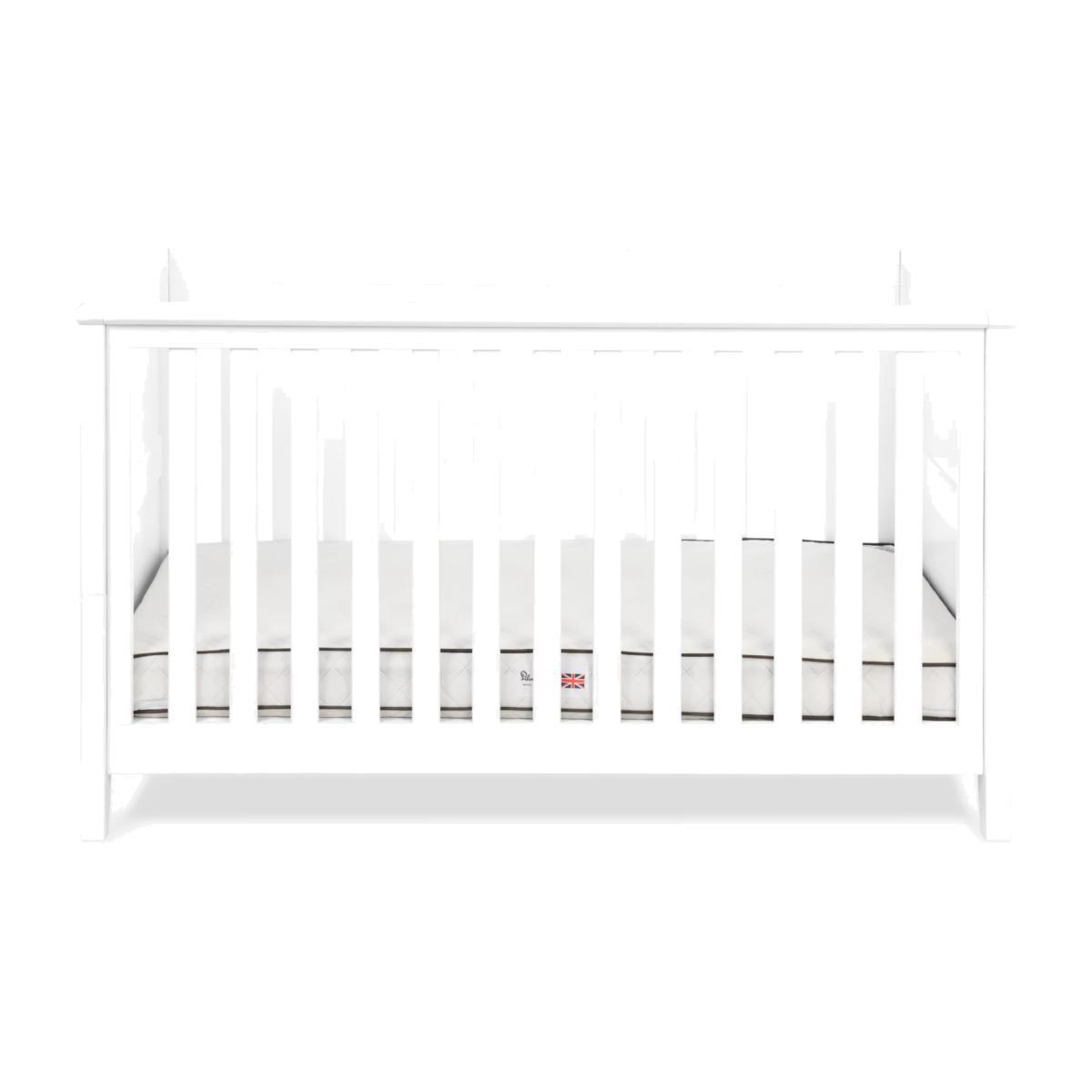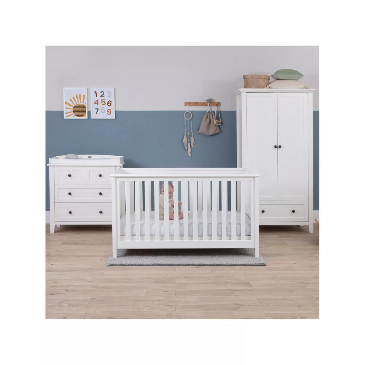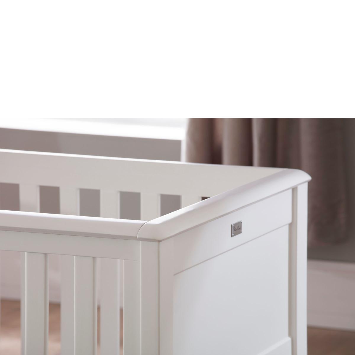 Nostalgia from Silver Cross is a beautiful furniture collection, expertly crafted from solid wood. Finished in white, with timeless styling and exceptional build quality, it will be part of your family for years to come. The elegant Nostalgia cotbed provides a stylish focal point for your baby's nursery. As a cot, it has three base height positions for your newborn and then, as they grow, transforms into a toddler bed. The cot bed is recommended for use with a 140 x 70cm mattress (sold separately). The cotbed's mattress heights are as follows: Lowest position: 28cm Mid position: 46cm Highest position: 65cm