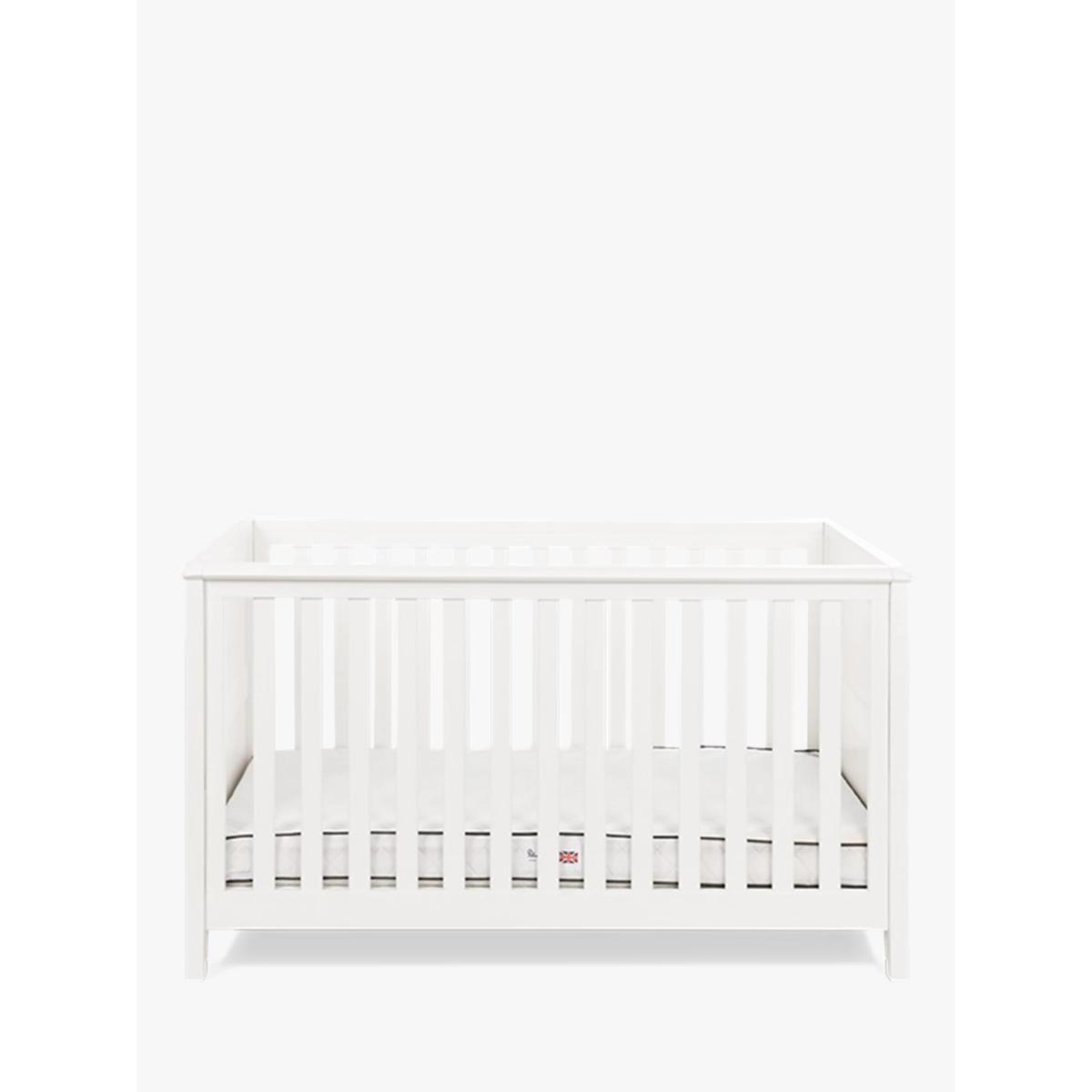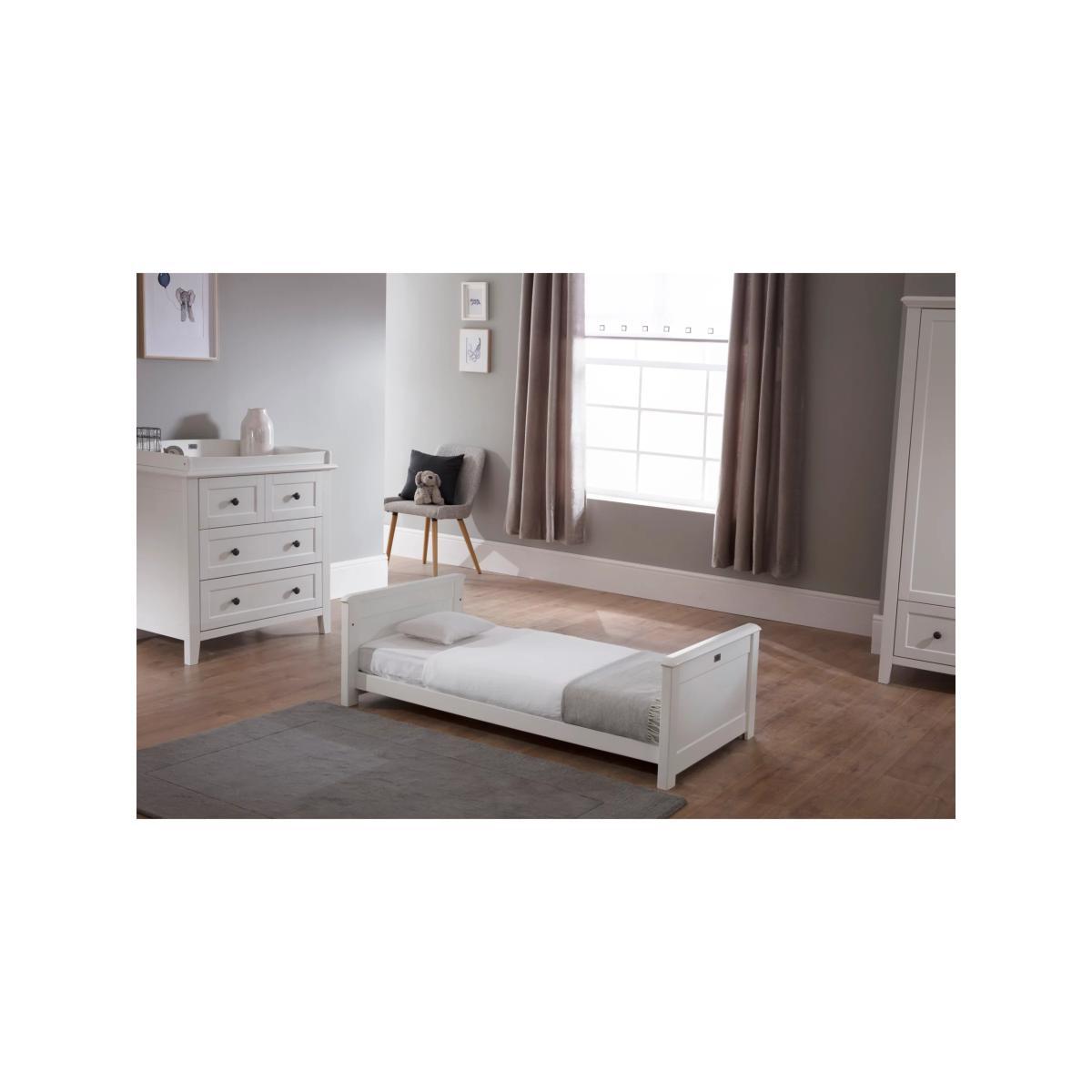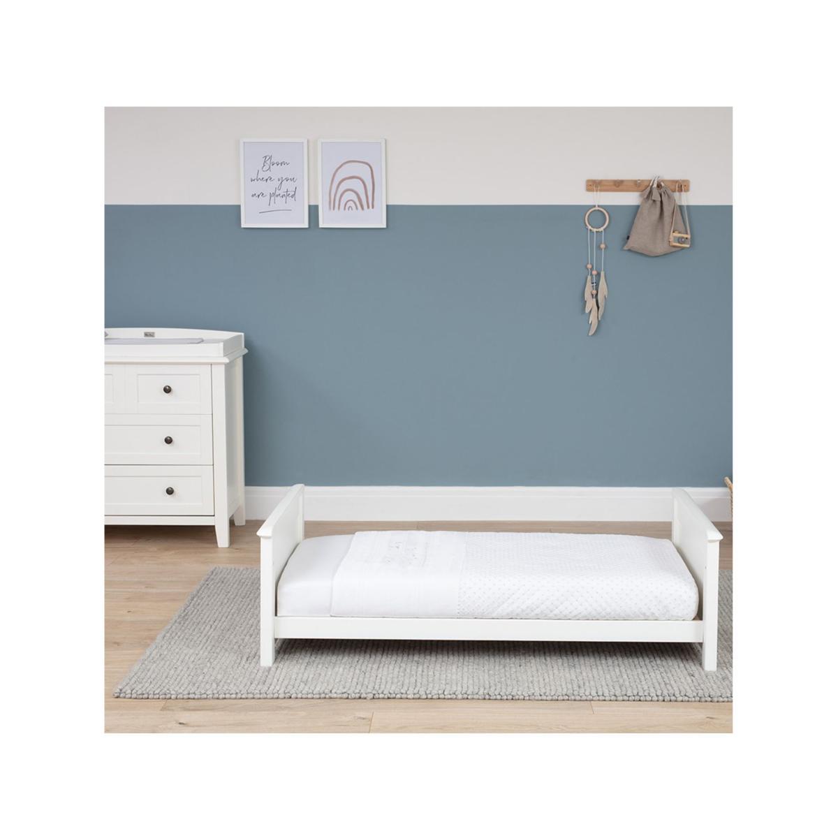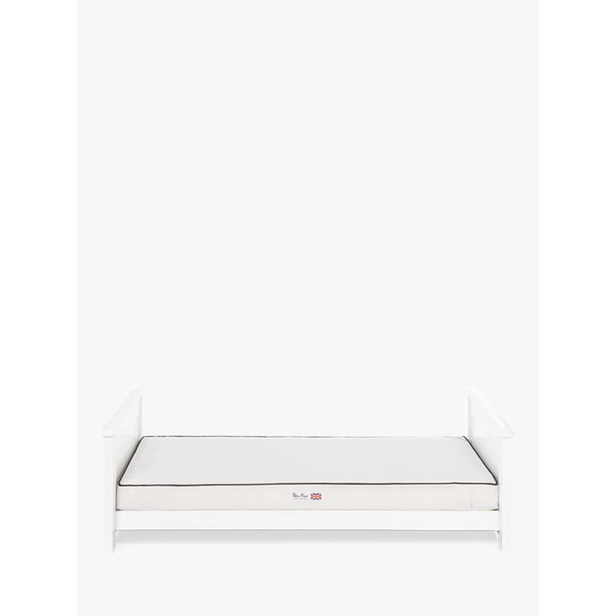 Nostalgia from Silver Cross is a beautiful furniture collection, expertly crafted from solid wood. Finished in white, with timeless styling and exceptional build quality, it will be part of your family for years to come. The elegant Nostalgia cotbed provides a stylish focal point for your baby's nursery. As a cot, it has three base height positions for your newborn and then, as they grow, transforms into a toddler bed. The cot bed is recommended for use with a 140 x 70cm mattress (sold separately). The cotbed's mattress heights are as follows: Lowest position: 28cm Mid position: 46cm Highest position: 65cm