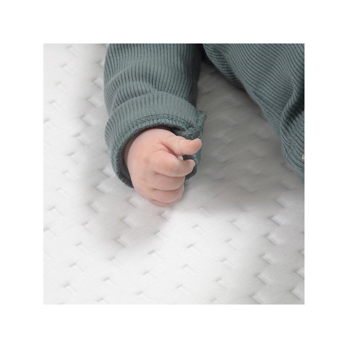 The premium cot bed mattress from Silver Cross is designed using thermo+ breathable and moisture wicking fabrics. It has 220 individual pocket baby springs to provide flexible, targeted support and will actively respond to your child’s changing shape. The design features square-shaped corners to minimise gaps between the mattress and cot bed, keeping little arms and legs safe. Heat regulating technology creates a dry and cool micro-climate which is perfect for baby's skin.