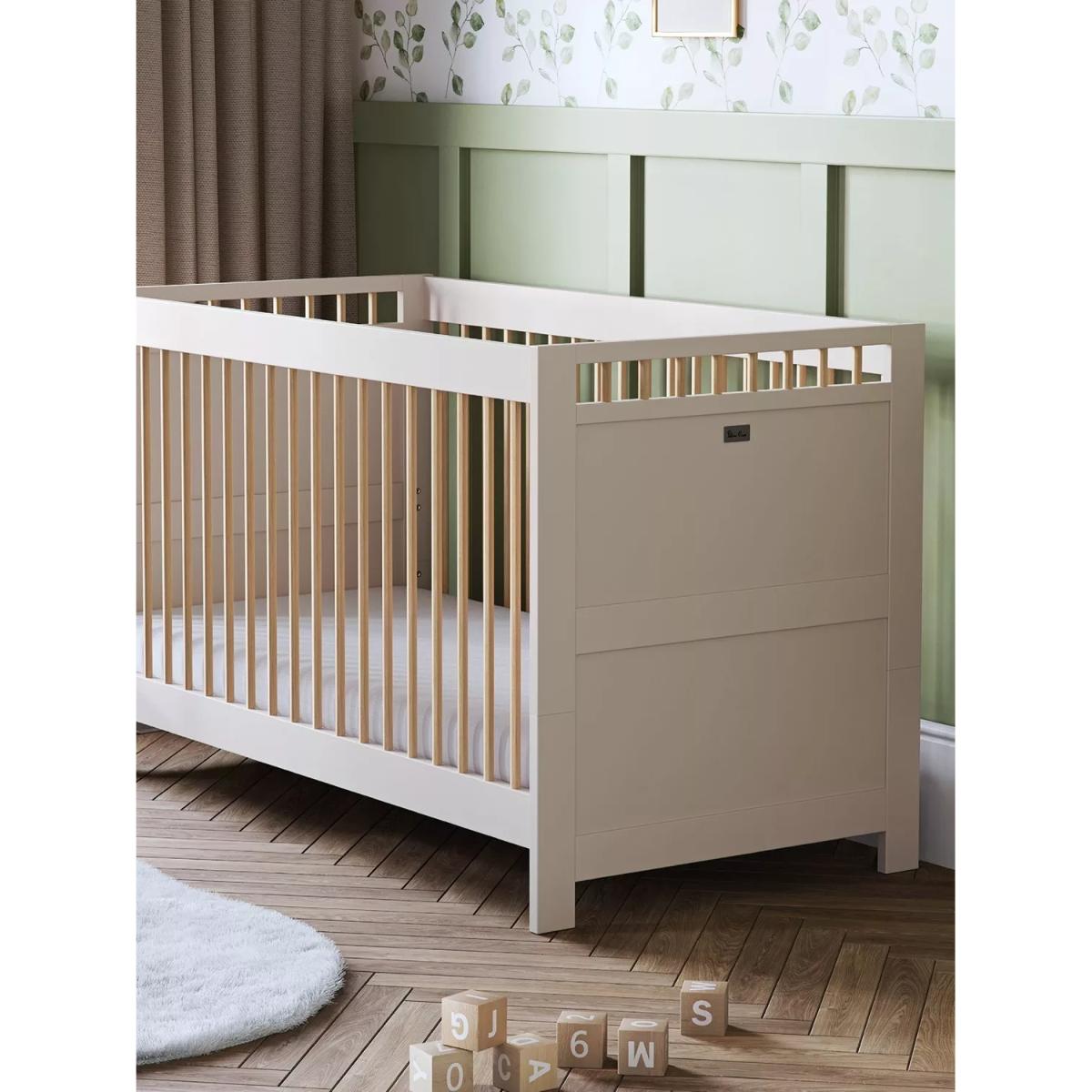 Discover the Silver Cross Seville cot bed, designed to give your baby the best night’s sleep from day one. Inviting a fresh and calming feeling into any nursery space, Seville’s quality design features clean, elegant lines and gender-neutral tones of soft cashmere and natural oak. Designed to ensure timeless, long-lasting quality, the Seville cot bed can be enjoyed for years to come as your family grows. The Seville cot bed will suit every stage of your little one’s growth from their first night at home up until their toddler years. With three mattress height positions, the cot bed should be used in the highest setting for your newborn and lowered gradually as they start to roll, sit and stand. When the cot railings are no longer needed, they can be easily removed to leave behind a safe and stylish toddler bed using the same base. Crafted for long-lasting quality From birth to toddler (approx. 4 years) Cot bed converts easily to a toddler bed to grow with your child Compatible with all Silver Cross True. Fit™ mattresses or standard size 140cm x 70cm mattresses Soft finish Solid oak accents