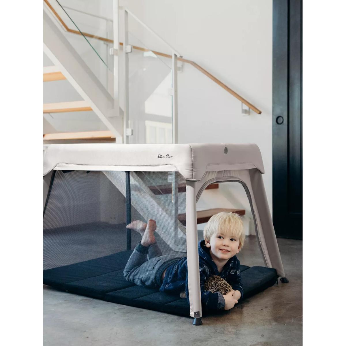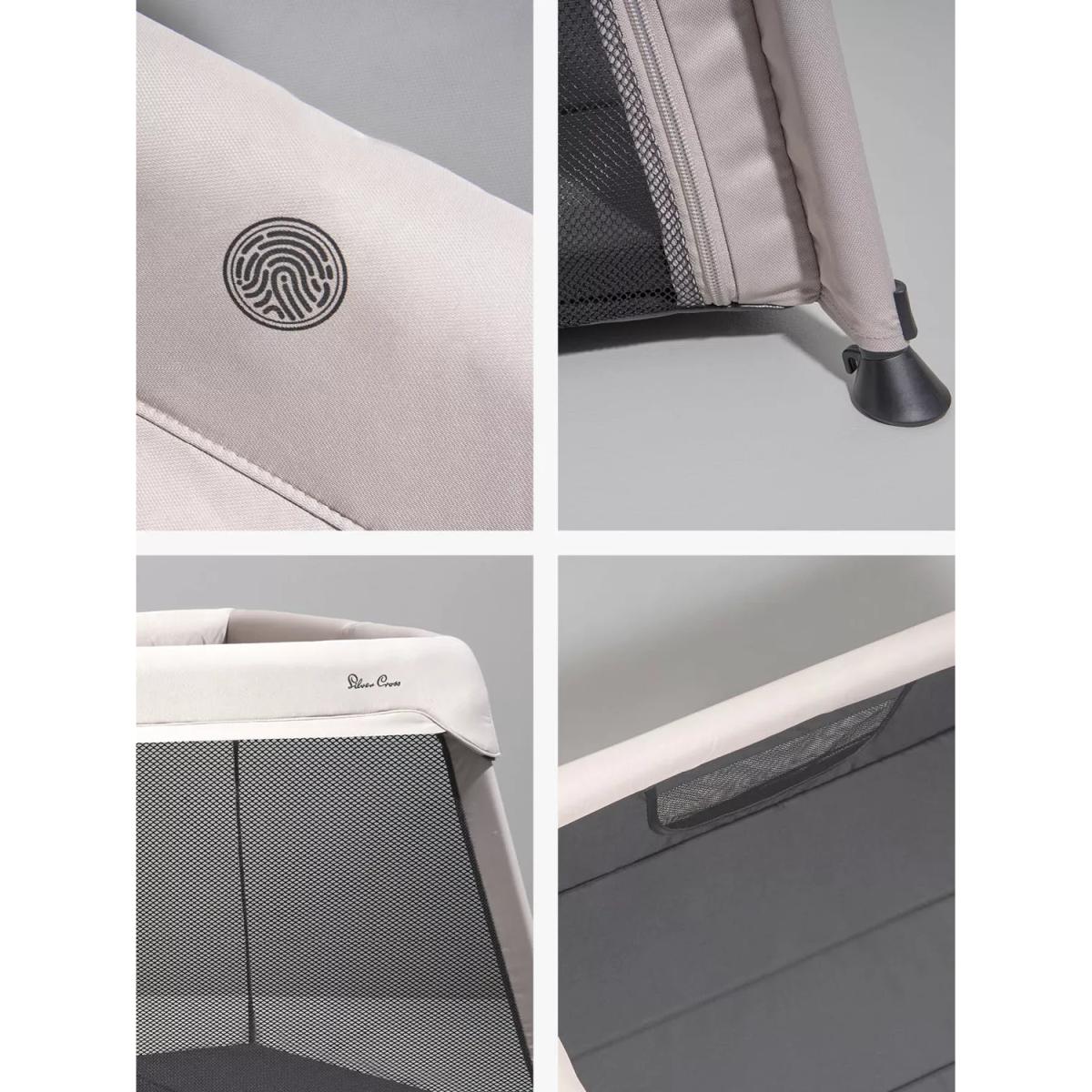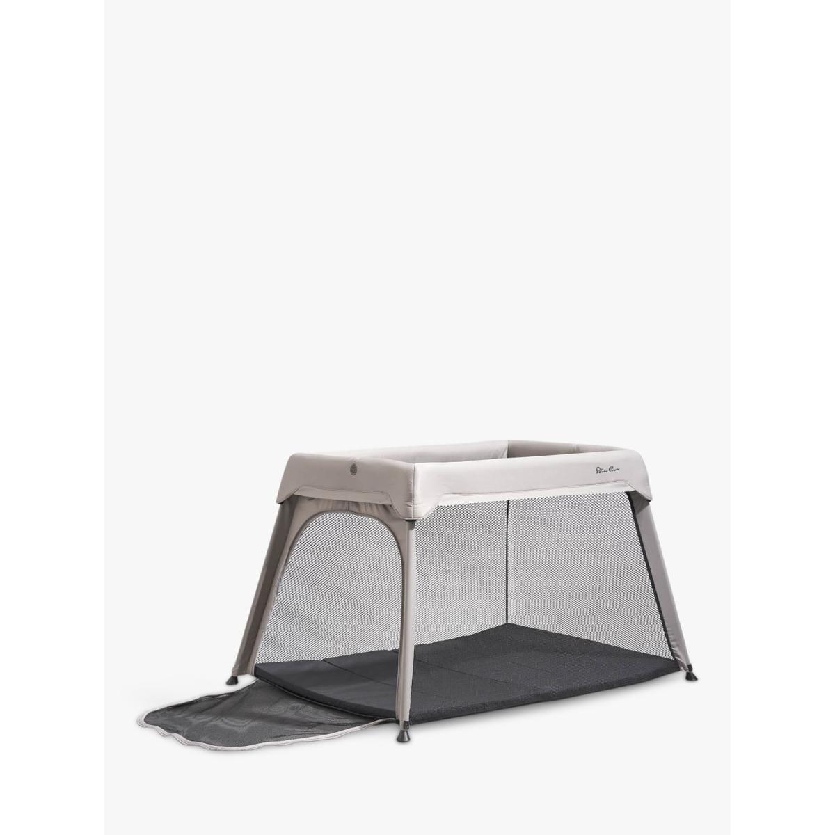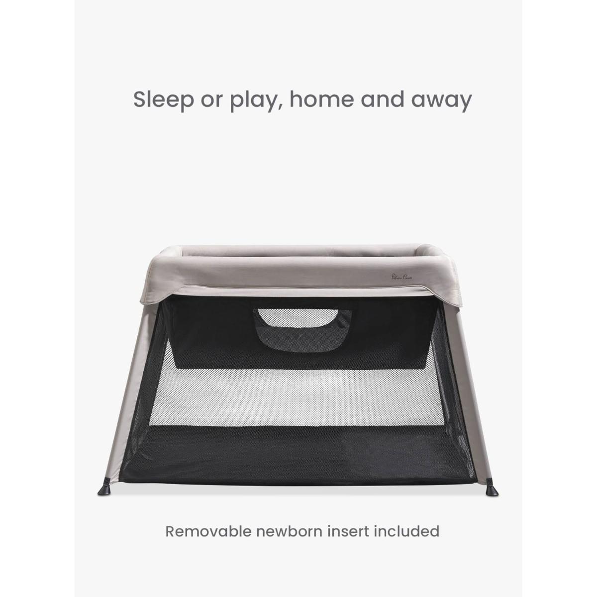 For sleep or play, home and away. Popping up and down in seconds, Slumber is the 3-in-1 travel cot, co-sleeper and playpen from Silver Cross, providing the best night’s sleep from birth to beyond. Seamless design - Complete with sustainable outer fabrics crafted from recycled plastic bottles, Slumber is inspired by architectural decor to fit seamlessly into any home. Newborn Ready - Bring your little one closer to you with the integrated newborn insert, which can be zipped in and out to create the perfect co-sleeping solution. Slumber's super comfortable mattress keeps baby safe and snug all night long with its soft, padded base and liner. The newborn insert allows features a mesh ventilation panel and viewing window so you can keep an eye on the baby throughout the night. Travel in style - As they grow, Slumber transforms into a lightweight travel cot using the same mattress, ideal for sleep at home or away. With a waterproof carry bag included, it’s super easy to store and transport when not in use – whether you’re jumping on a train or riding in the car. Perfect Playtime - When it's time for fun, your toddler can crawl in and out of Slumber through its zip-open door – providing them with a secure space for playtime. Airflow mesh panels ensure they’re always kept cool. Key Features: Suitable from birth to toddler (approx. 3 years) 3-in-1 travel cot, co-sleeper and playpen Simple, easy fold Lightweight and compact design Newborn insert included Waterproof carry bag included Sustainable fabrics crafted from recycled plastic bottles