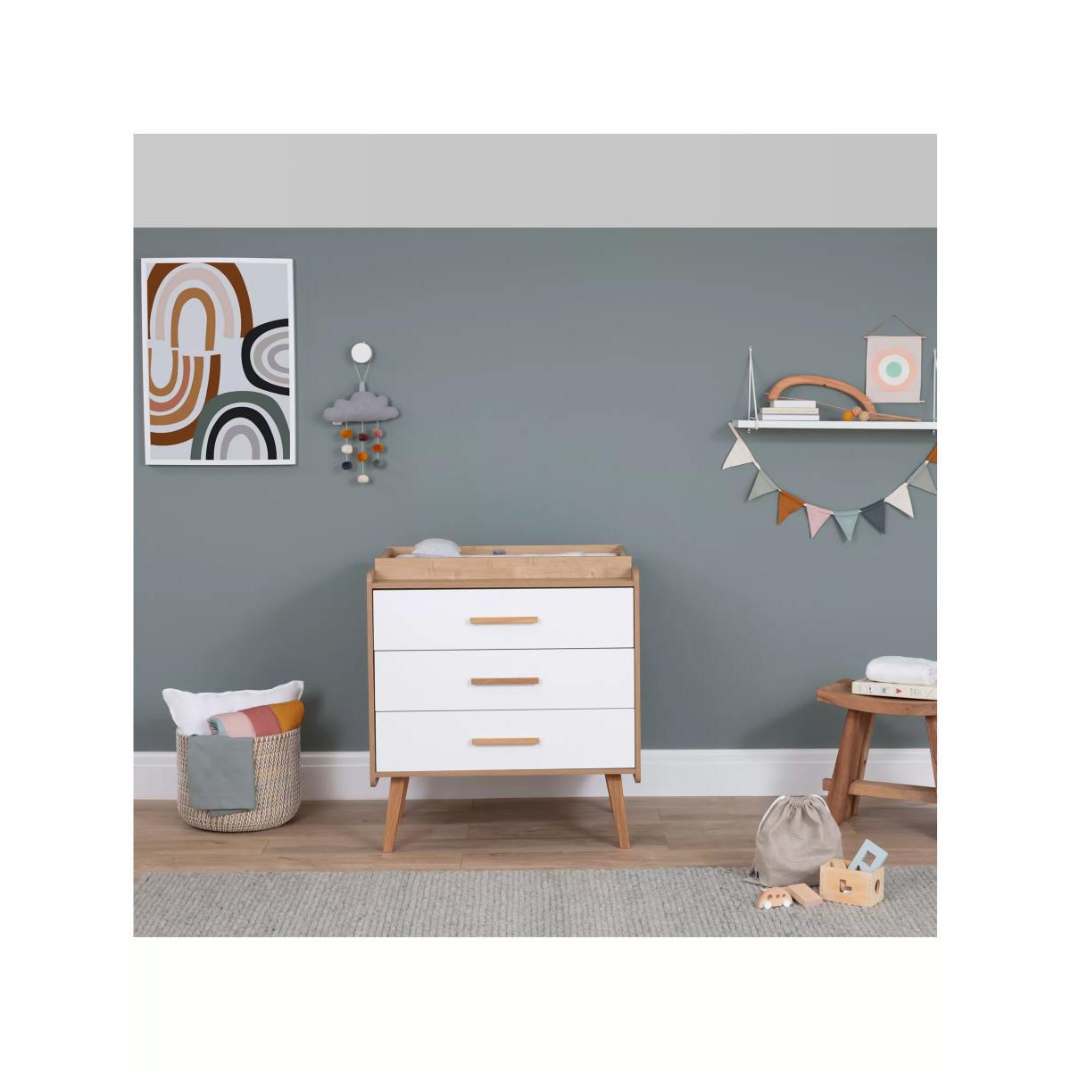 I love this changing table for its clean, Scandi-inspired aesthetic that seamlessly blends functionality with a soft, natural look. It works particularly well in modern, minimalist interiors or calm, neutral nurseries, where its light wood and white finish can complement other furniture and decor. For styling, consider pairing it with pastel or muted tones in textiles and accessories to maintain a serene atmosphere. Practical tips include keeping the top surface clear for easy changing sessions and utilising the drawers for organised storage of baby essentials. Its compact yet spacious design makes it a versatile piece that can grow with your child and adapt to different interior styles over time.