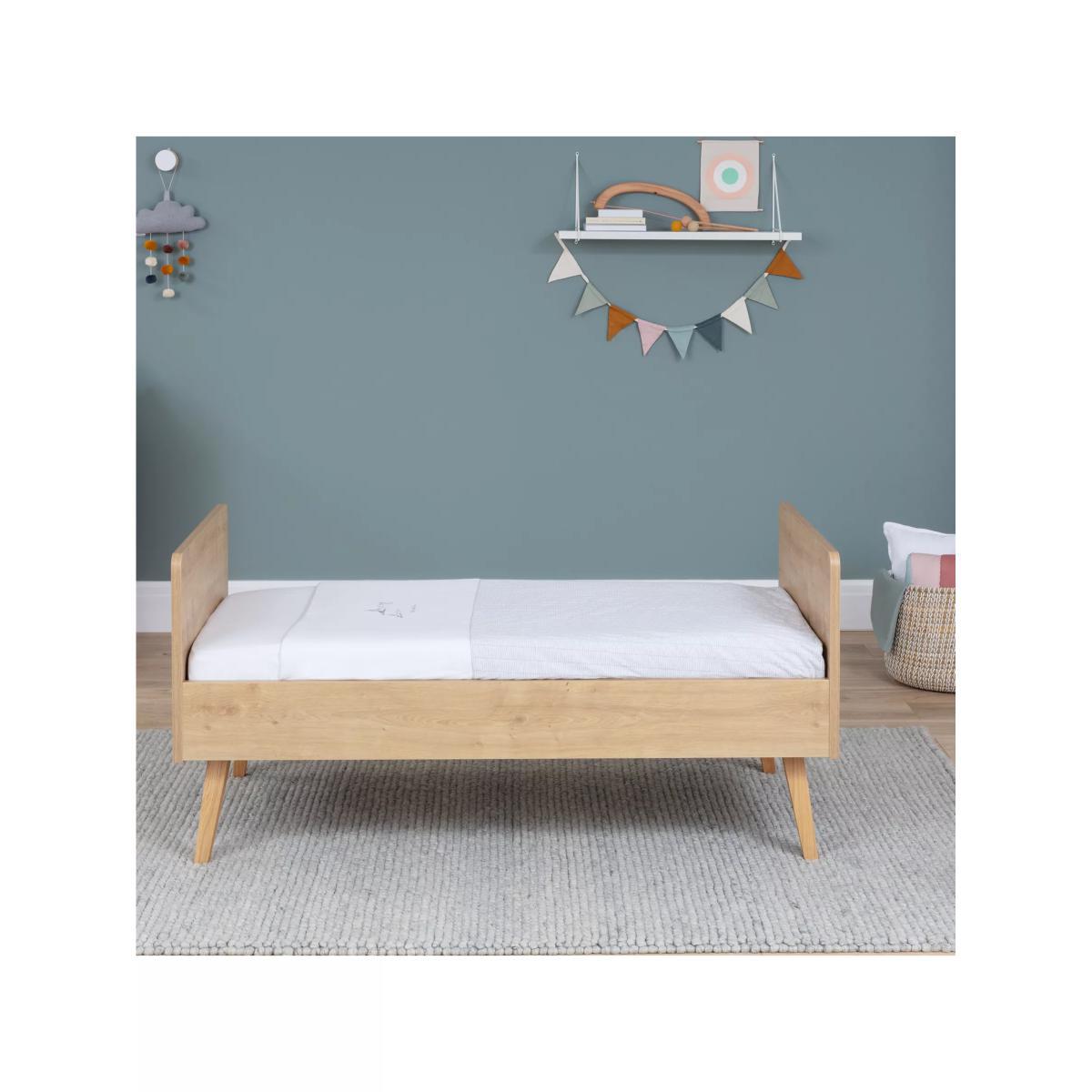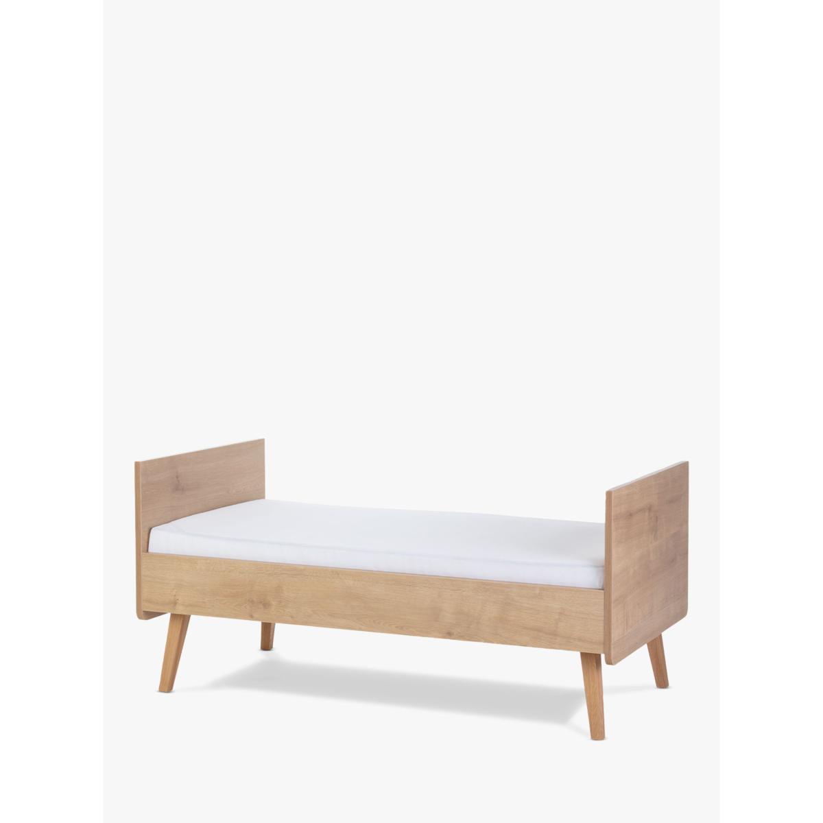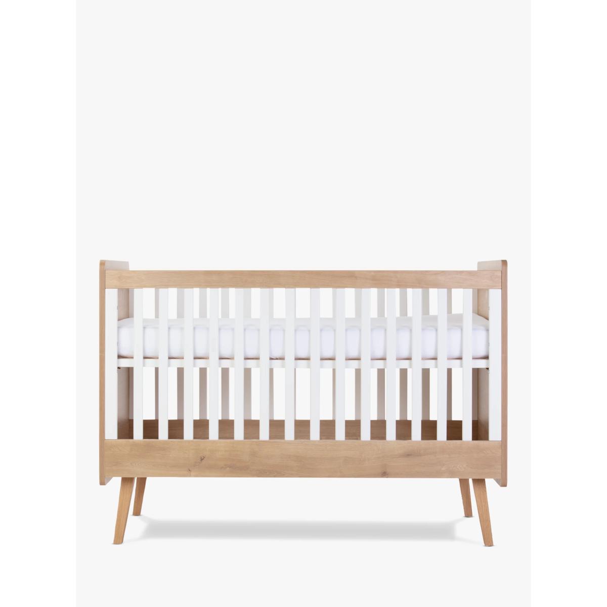 This stylish Westport cotbed from Silver Cross is a beautiful addition to your nursery, combining mid-century minimalist inspiration with a contemporary twist. The warm oak effect finish is complemented by statement white details, while the design is enhanced by soft curves and solid oak feet for a standout look. The Westport cot bed has three base height positions and then converts to a toddler bed to grow with your little one. Cotbed requires mattress size 140 x 70cm which is not included. The cotbed's mattress heights are as follows: Lowest position: 48cm Mid position: 63cm Highest position: 78cm