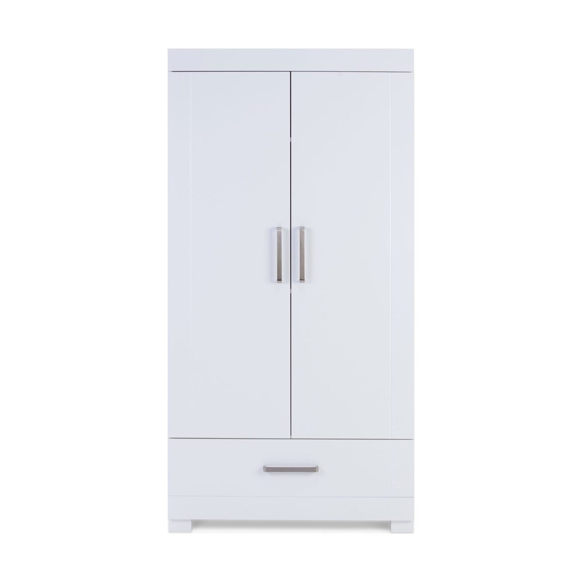 The Wimbledon is the latest range in Silver Cross's definitive furniture collection. With a matt white finish and brushed steel accents for a standout contemporary look, each piece is expertly crafted, with close attention paid to every detail. This stunning wardrobe complements the range and has generous and flexible storage. It has two shelves with two clothes rails as well as a deep bottom drawer for additional storage. Complete the set with other furniture pieces from the Wimbledon range.