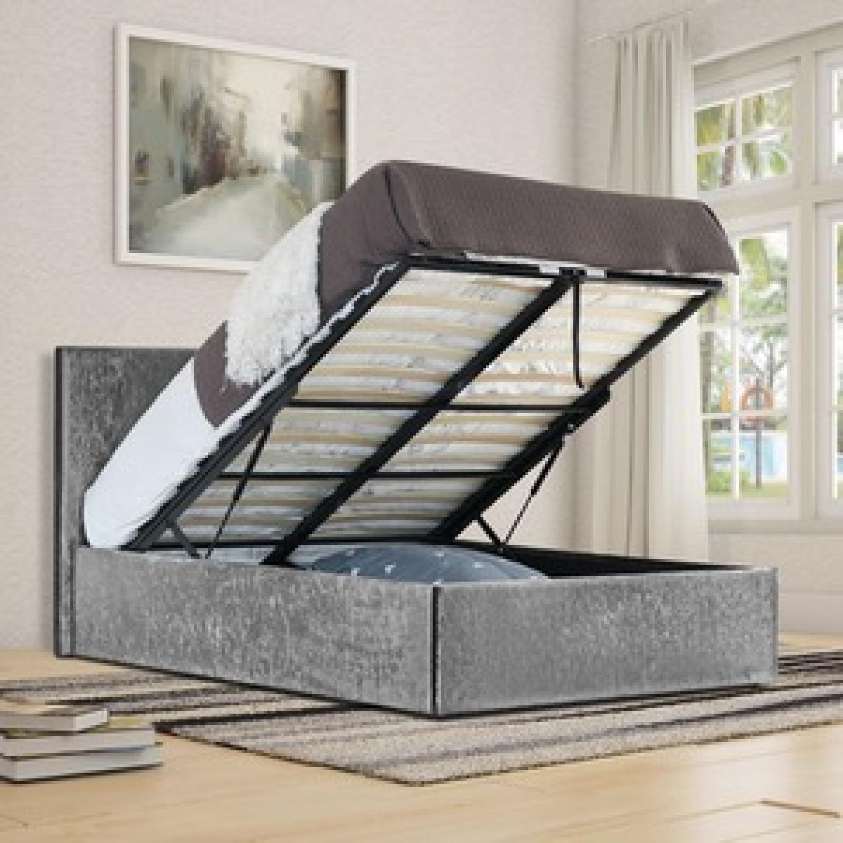 Silver Crush Velvet Storage Ottoman Bed Frame - King