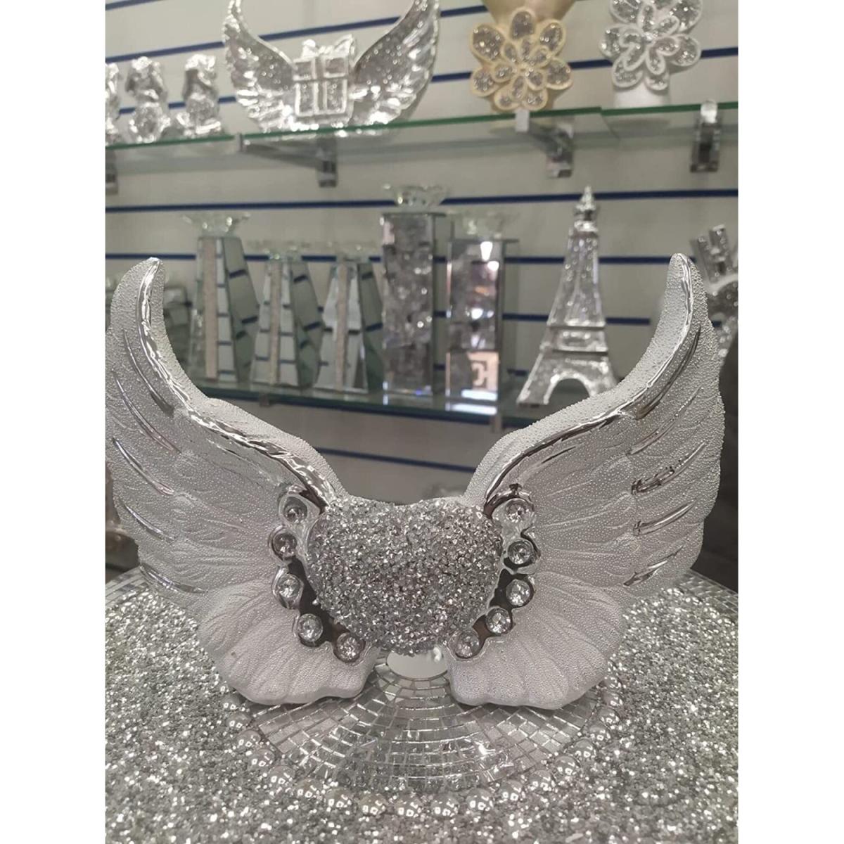 I love this winged angel heart ornament for its contemporary take on classic symbolism, adding a touch of glamour with the crushed diamond effect and shimmer in silver. It works particularly well in modern, luxe interiors, or as a striking accent piece on a mantel, side table, or displayed within a glass cabinet to highlight its intricate detailing. To style it effectively, consider pairing it with neutral or monochromatic accessories to let its metallic finish shine, or incorporate it into a celestial-inspired decor scheme for a cohesive look. Its versatile shape makes it a great statement piece that can bring a sophisticated, spiritual element to both minimalist and eclectic interiors.