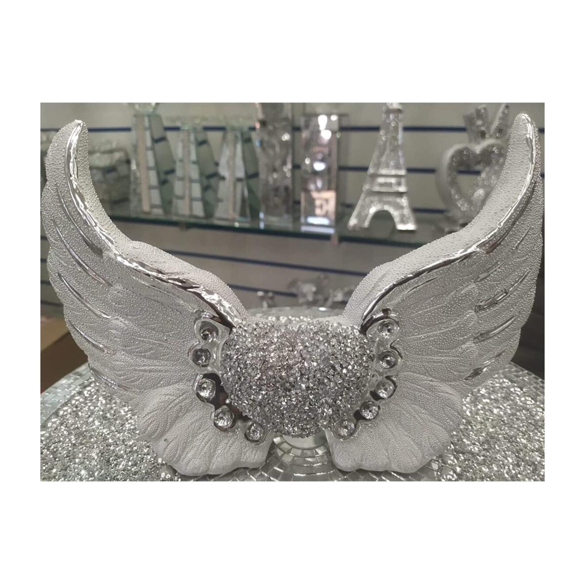 Silver Crushed Diamond Angel Heart Wings Ornament - Silver