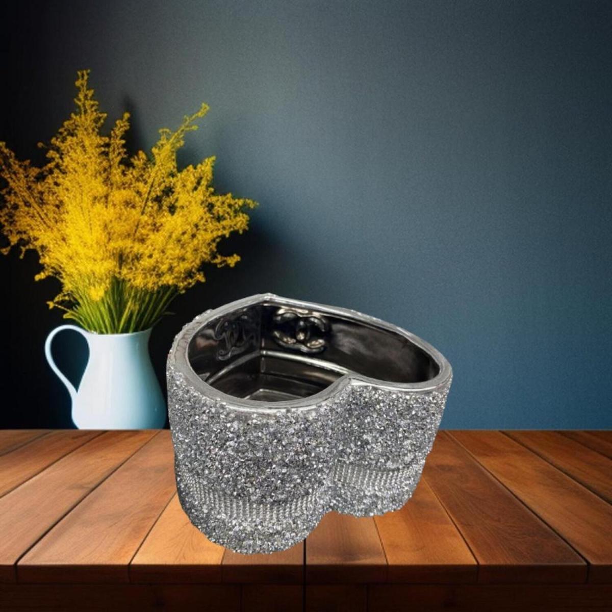 This sparkly silver vase is a great statement piece that works particularly well in glam or contemporary interiors. I love its tactile texture and dainty heart shape, which adds a touch of playfulness and elegance. It’s versatile enough to be used as a standalone decorative item on shelves or side tables, or paired with fresh or faux flowers to bring a bit of sparkle to a room. For styling tips, try placing it alongside minimalist decor to let its glitz stand out, or balance its shine with softer textures like velvet cushions or matte surfaces to create depth. It’s also perfect for adding a pop of luxury in living rooms, bedrooms, or even bathrooms-just be mindful of the surroundings to keep the focus on its eye-catching appeal.