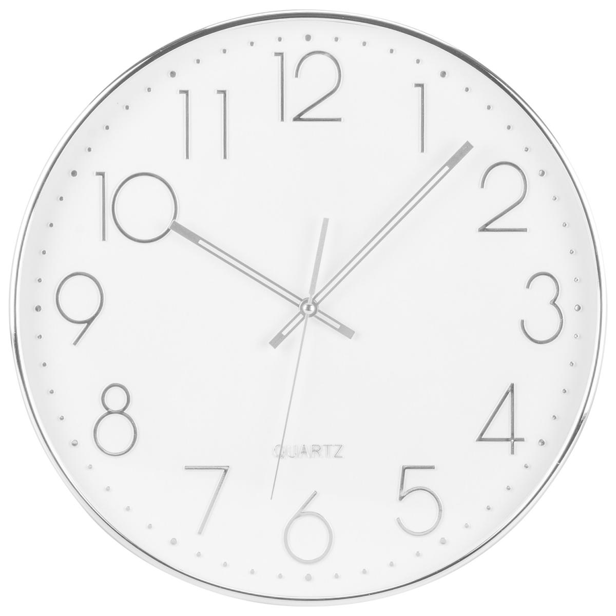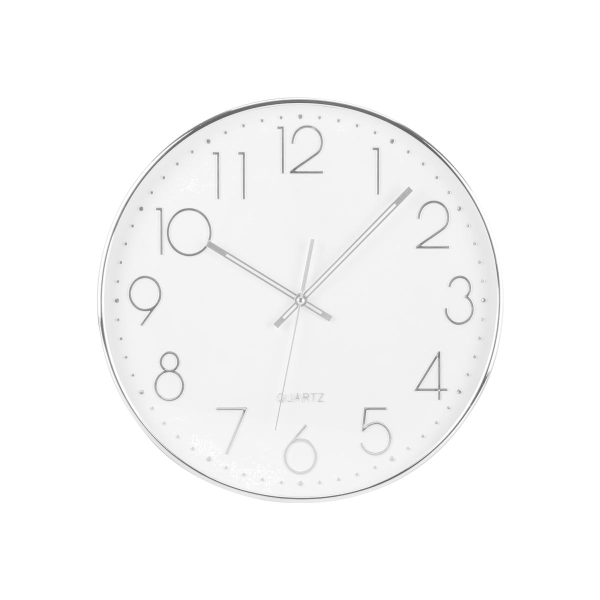 Sleek, stylish, and functional, this Silver Digits Wall Clock is designed with a pure white background and contemporary silver surround. Its three dials point to large silver digits, creating a stunning metallic accent to your existing décor while helping you keep track of time in a modern and minimalistic way.