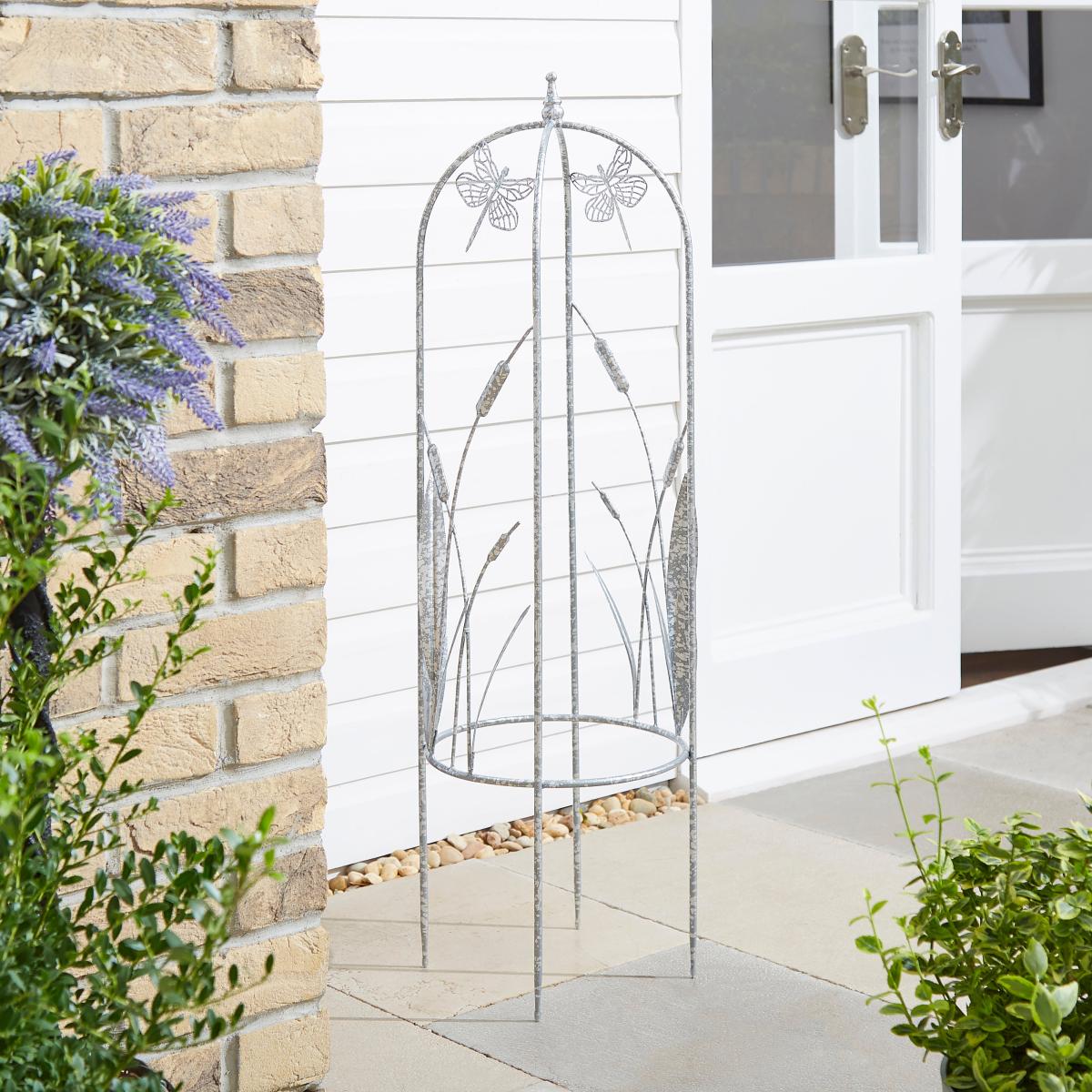 Silver Dragonfly Obelisk Plant Support Silver