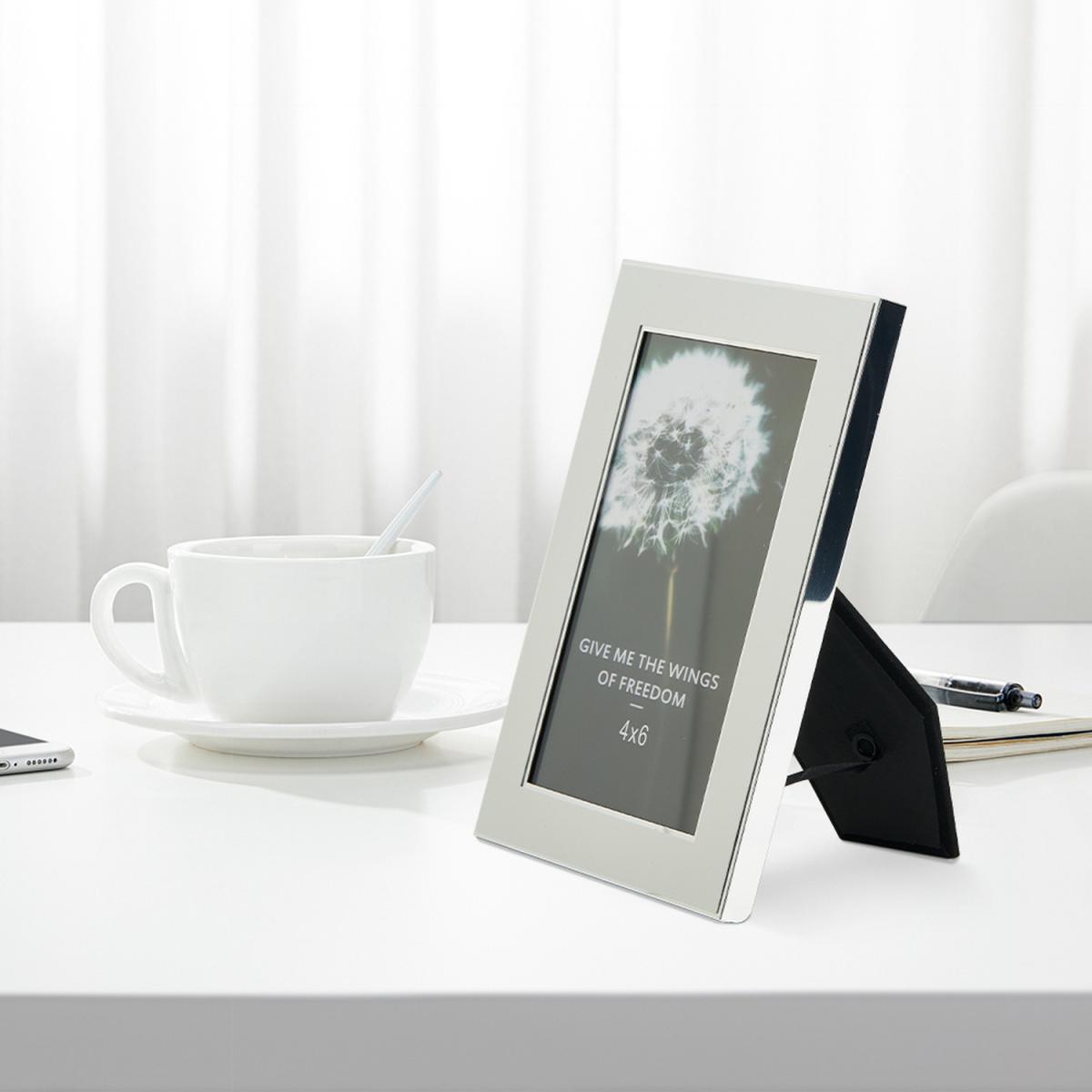Display your cherished memories with this sleek photo frame from Livingandhome. Its glamorous rectangular shape and glossy silver rim exude a modern vibe. Simple and stylish, it beautifully enhances your photos. Use it on a table, desk, mantelpiece, or hang it on the wall. They are crafted with lightweight yet durable aluminium for easy handling.