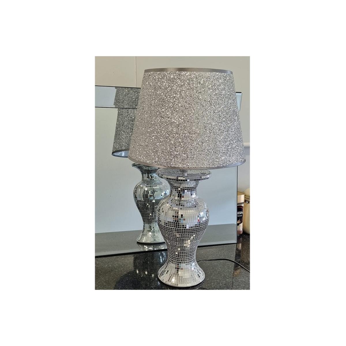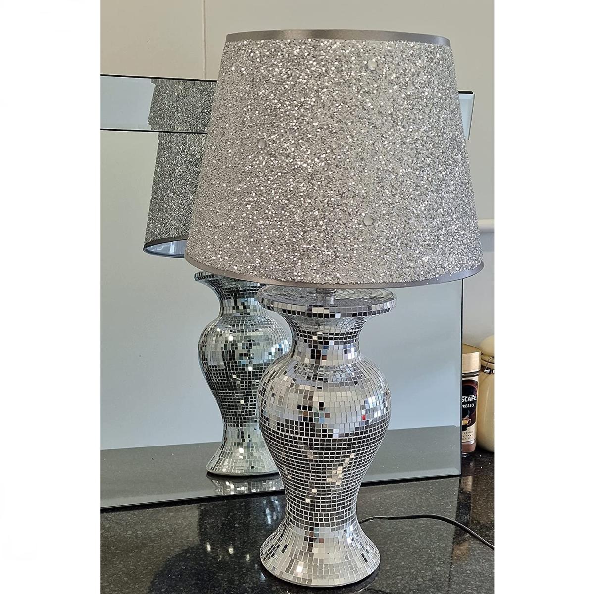 Silver Glitter Crushed Diamond Table Lamp with Shade Mirror Base - Silver