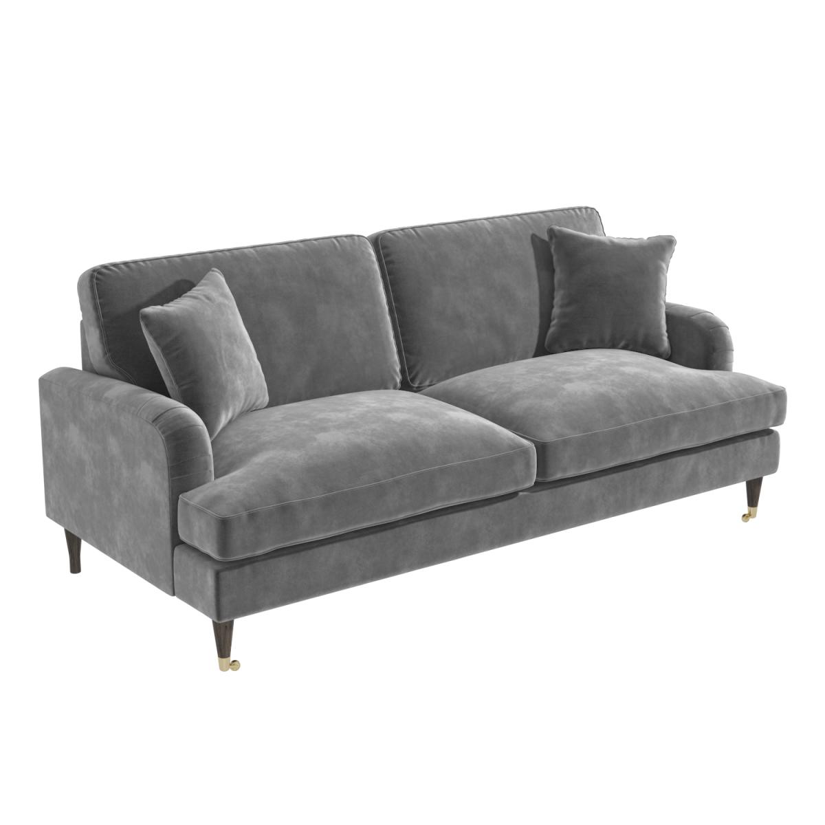 This bundle includes: 1 x Payton Silver Grey Velvet 3 Seater Sofa 1 x Payton Silver Grey Velvet Footstool Features we love Silver grey velvet three-seater sofa and footstool The perfect modern addition to any living room Soft-touch plush velvet upholstery is right on trend Tailored piping and saddle arm detailing Dark wooden legs finished with gold castors All about me Lounge in ultimate comfort with our Payton three-seater sofa and footstool set in silver grey. All the cushion covers, including the two scatter cushions, are removable and easy to wipe clean. Filled with spongy foam, the sofa and footstool make the perfect place to relax after a long day. Both items are easy to assemble; simply screw on the legs. Need to know Three-seater sofa Dimensions: W190 x D96 x H85 cm Packaging dimensions: W192 x D98 x H61 cm Weight: 54kg Colour: Silver grey, dark wooden legs, gold castors (front legs only) Finish: Upholstered Material: Velvet (100% polyester), wooden frame and legs and metal castors (front legs only) Filling: Foam Assembly required: Yes - just attach the legs Footstool Dimensions: W75 x D62 x H44 cm Packaging dimensions: W77 x D64 x H31 cm Weight: 10kg Colour: Silver grey, dark wooden legs, gold castors Finish: Upholstered Material: Velvet (100% polyester), wooden frame and legs and metal castors Filling: Foam Assembly required: Yes - just attach the legs