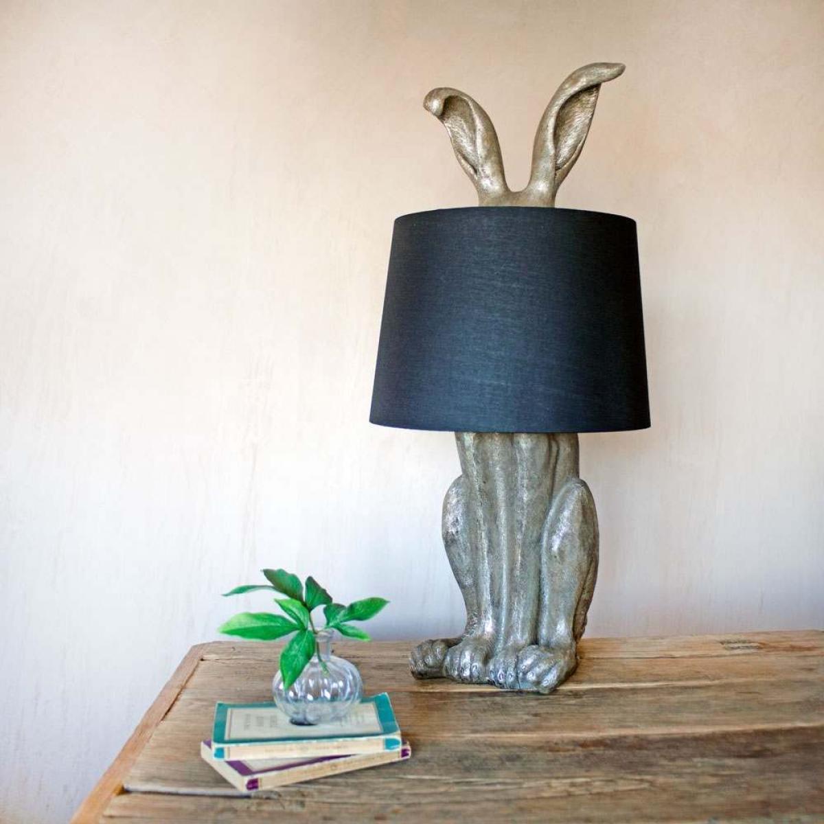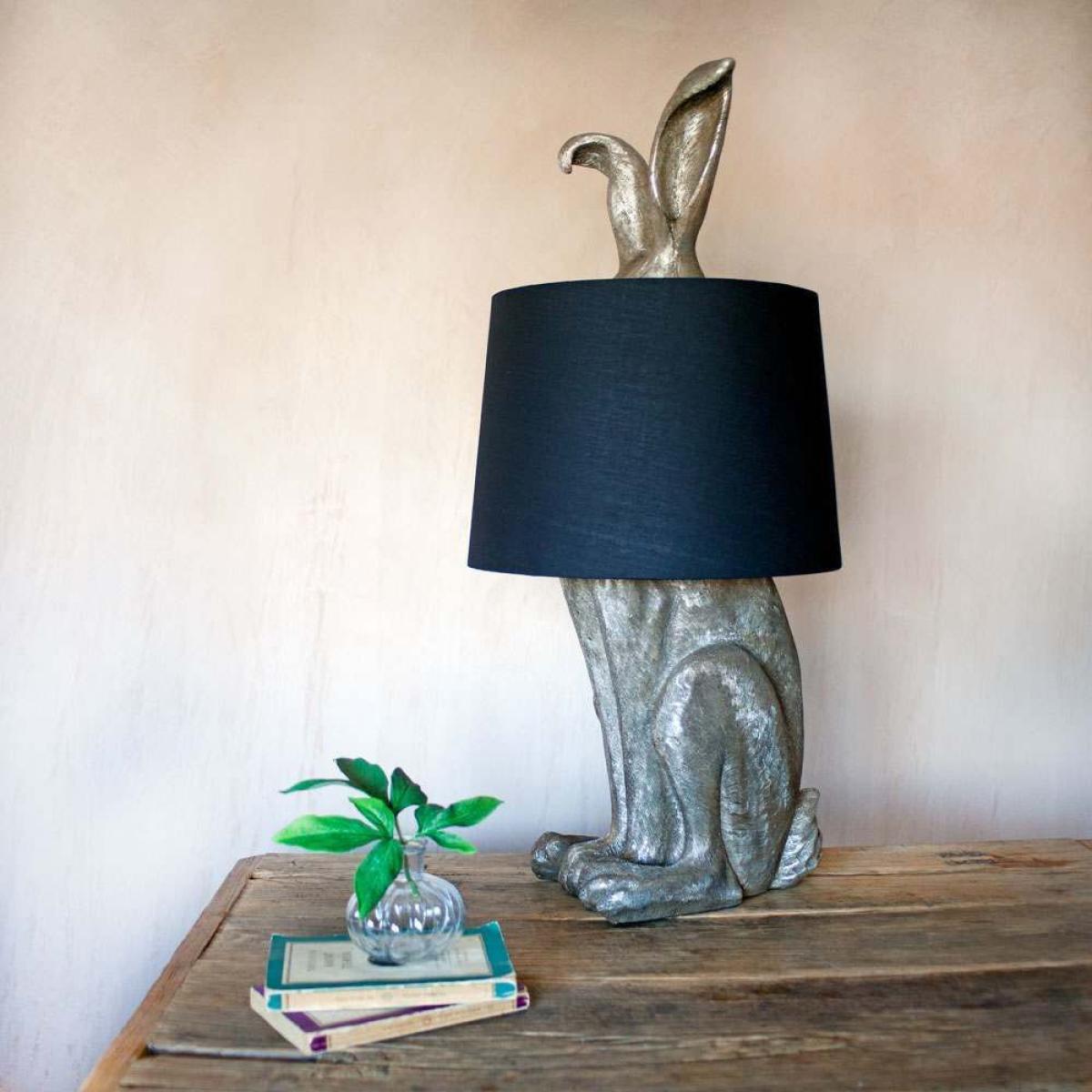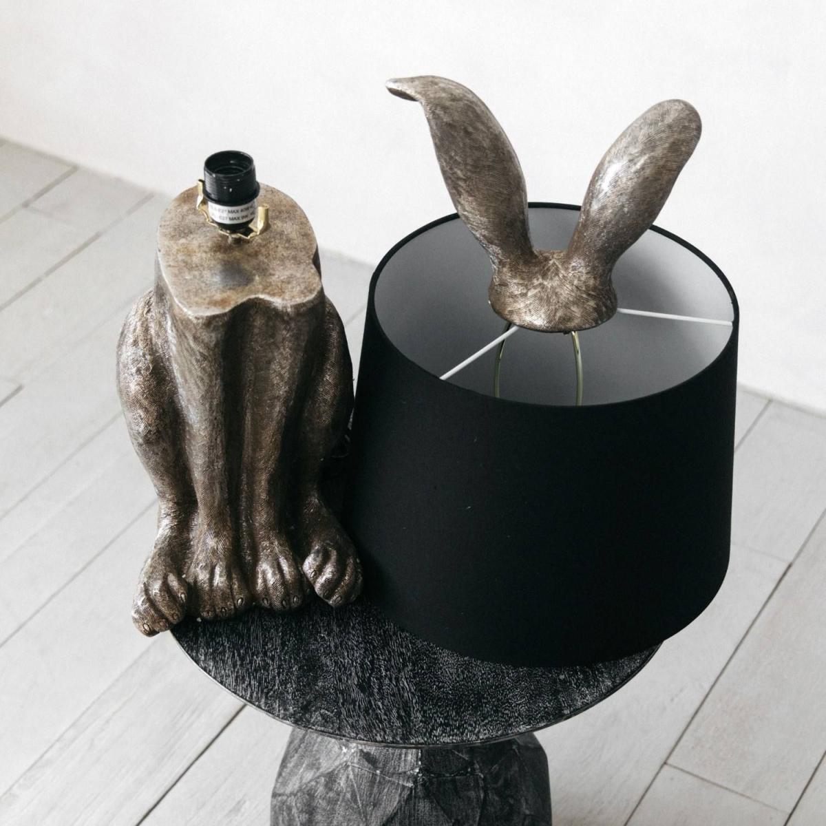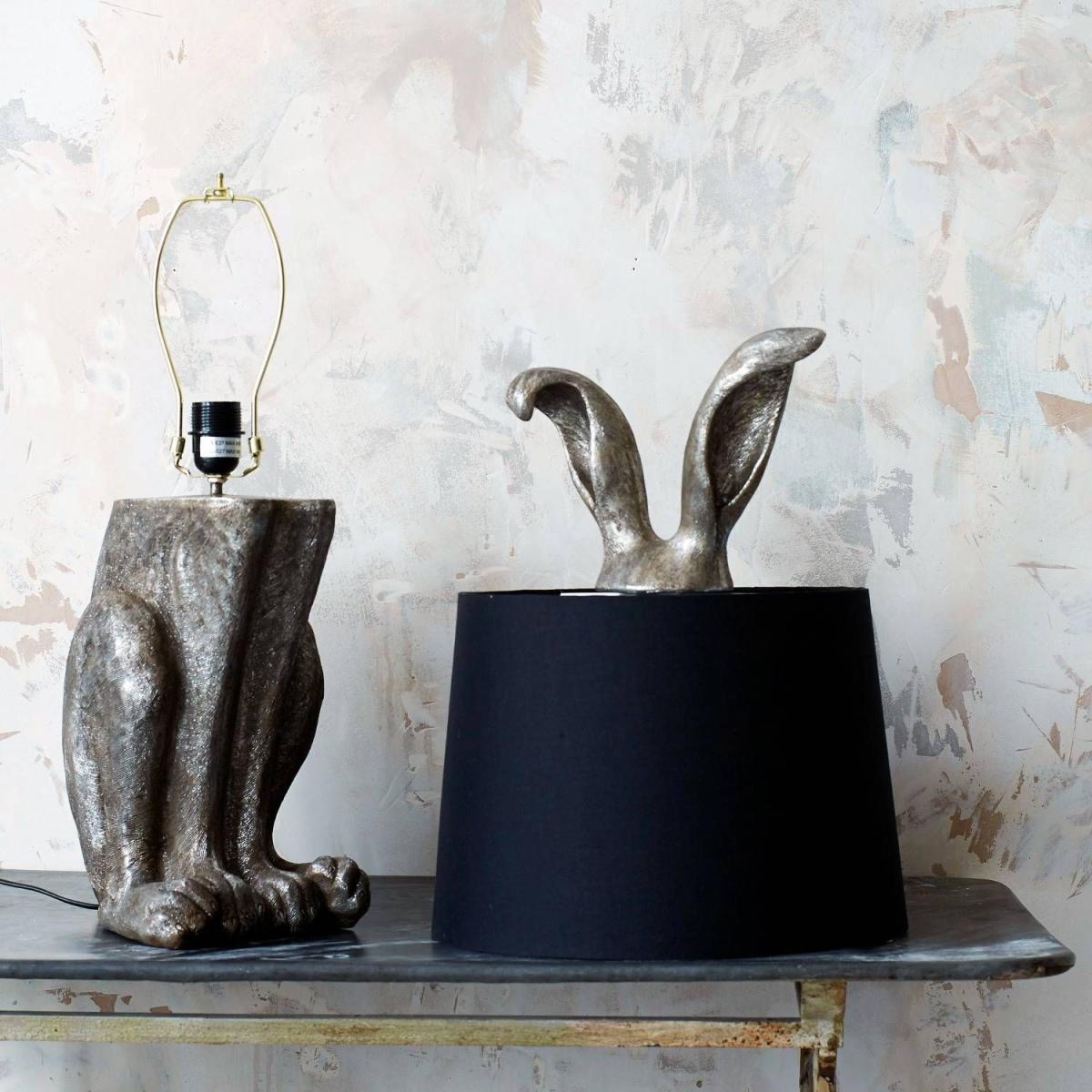 Extraordinary design with adorable features. Our silver Hetty Hare table lamp with black shade boasts intricate detail on the body and large floppy ears. The lamp will suit a plethora of interior colour palettes, and be treasured by adults and children alike. Sit the metallic table light on your sitting room side table, or on your hallway console for a stamp of quirky interior finesse. Explore more. Animal Lights.