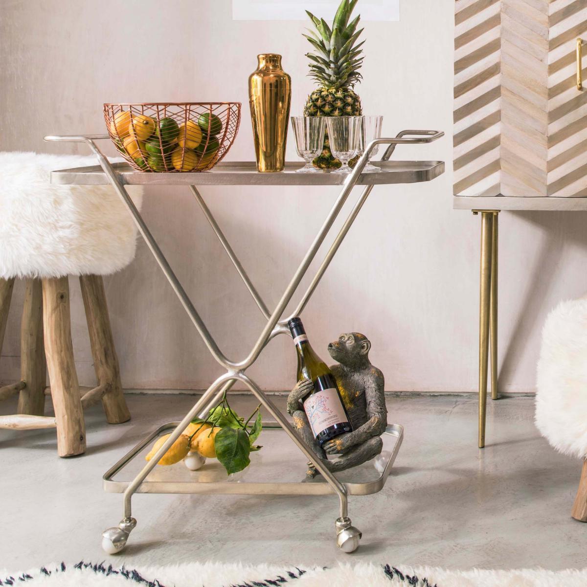 I love the silver hourglass drinks trolley for its sleek, modern silhouette that feels both functional and stylish. It works well in contemporary interiors, especially those with metallic accents or a minimalist aesthetic. To style it effectively, I recommend pairing it with eye-catching glassware and vintage bar accessories to create a curated look. Practical tips include using the top surface for serving drinks or displaying decorative items, while the lower shelf is perfect for storing bottles or additional glassware. Its mobility makes it versatile for entertaining, and it can easily be moved to different areas to add a touch of glamour wherever needed.