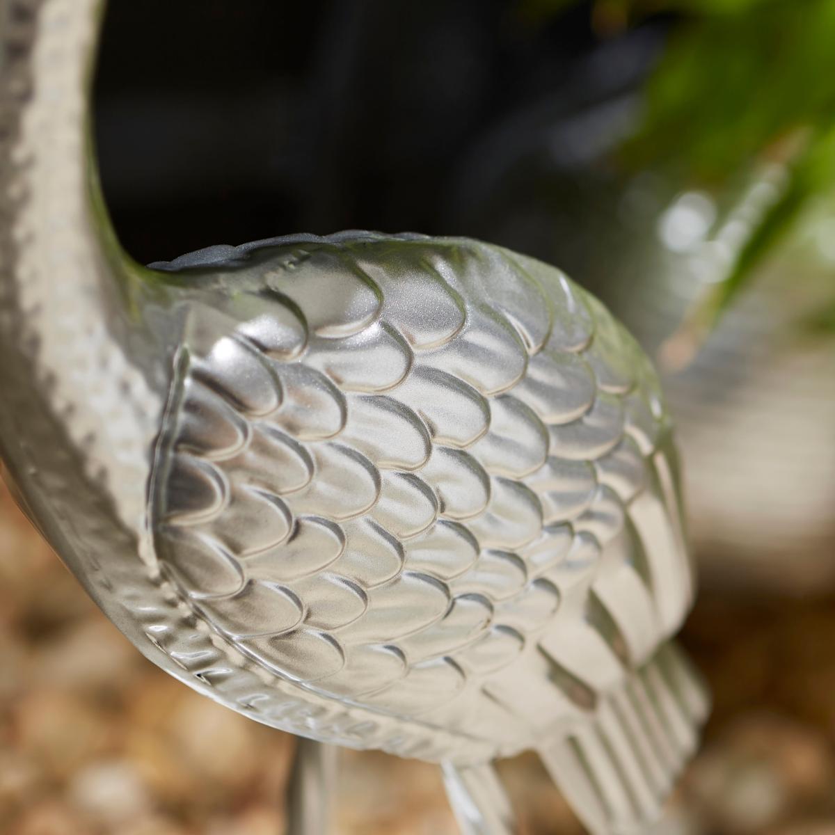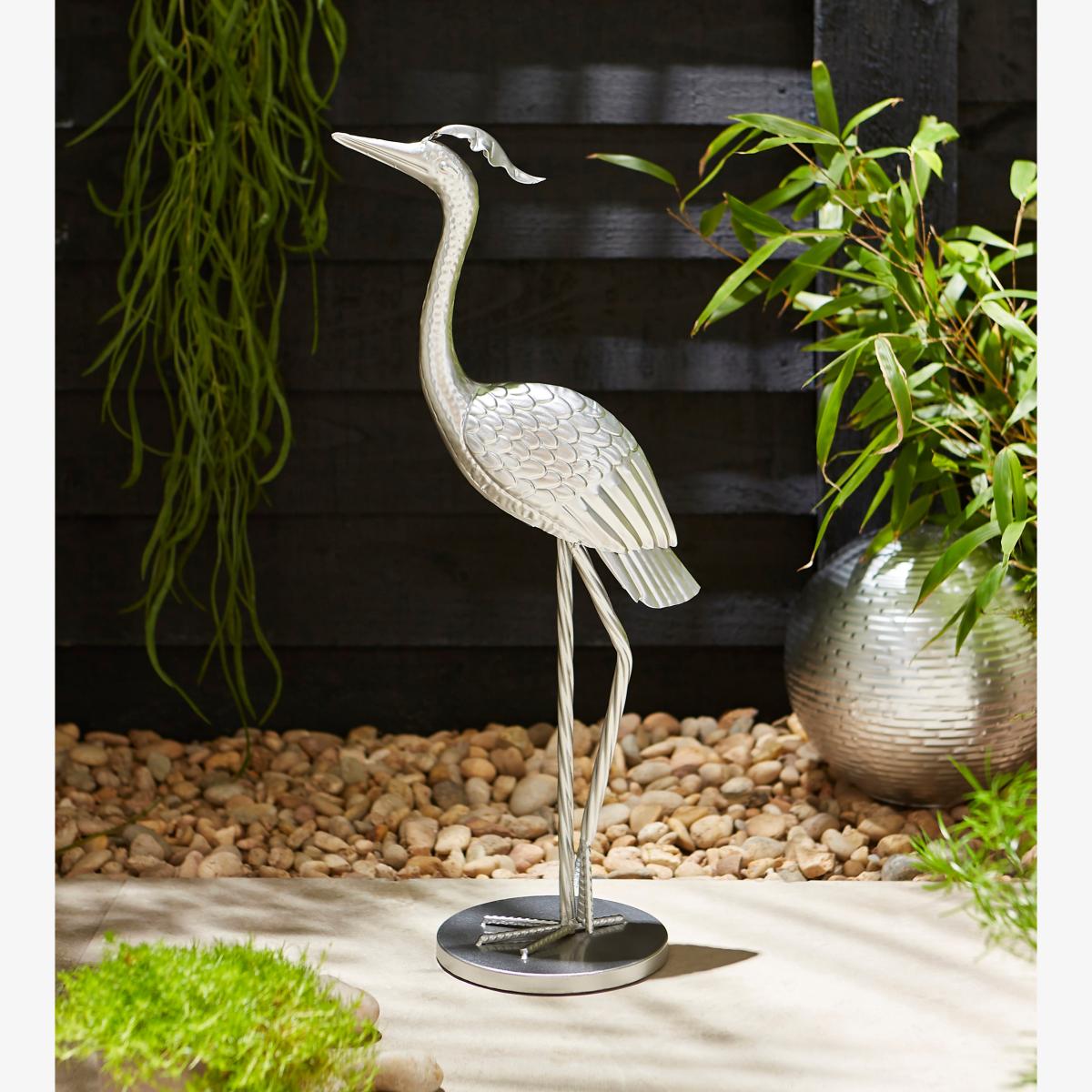 This silver heron sculpture makes a stylish statement piece that works well in contemporary or eclectic interiors. I love how it adds a touch of metallic sophistication without overpowering a space. It’s versatile enough to be placed on a mantel, sideboard, or even as a standalone accent in an entrance hall. For practical styling, pair it with neutral backgrounds or natural textures like wood, stone, or greenery to highlight its sleek, metallic finish. Keep it simple and let the sculpture be the focal point-it's a smart addition to modern settings or for adding a touch of elegance to outdoor covered areas.