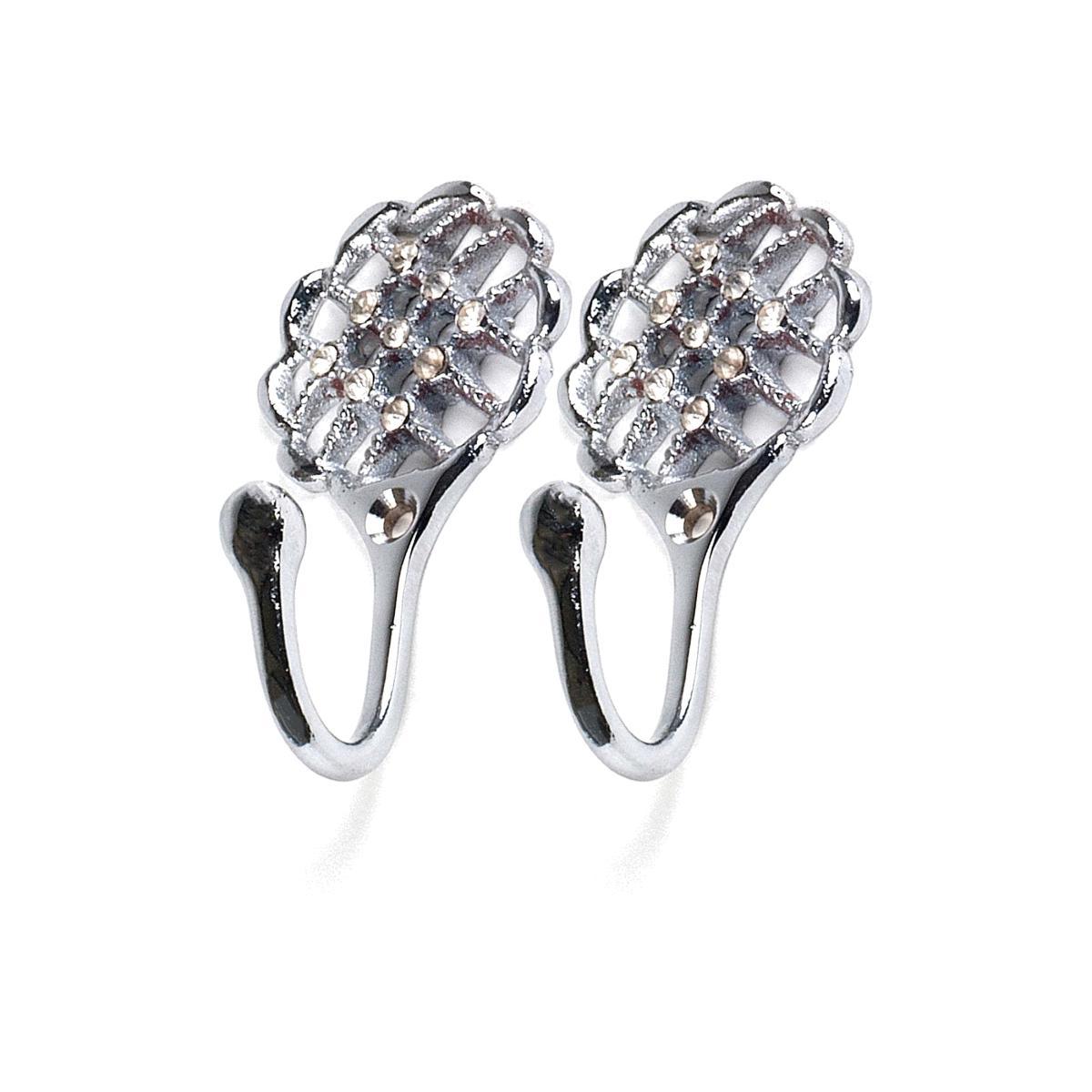 Available to buy online today, the lattice pattern and sparkling crystal detail of our tieback hooks will add a glamorous feel to your living space. Finish your curtains in style with our glittering lattice tieback hooks. Made from durable and long-lasting metal, our pair of lattice tieback hooks will easily attach to your walls for a secure place to hook your curtain tiebacks and keep your drapes neatly displayed during the day. Simple to care for, our stylish tieback hooks just need a simple wipe clean to keep the high shine silver finish and decorative crystals sparkling. Perfect for completing your modern décor, our beautiful lattice tieback hooks will give your living space a subtle glamour for a truly personalised look. Please note: This product is subject to stock availability.
