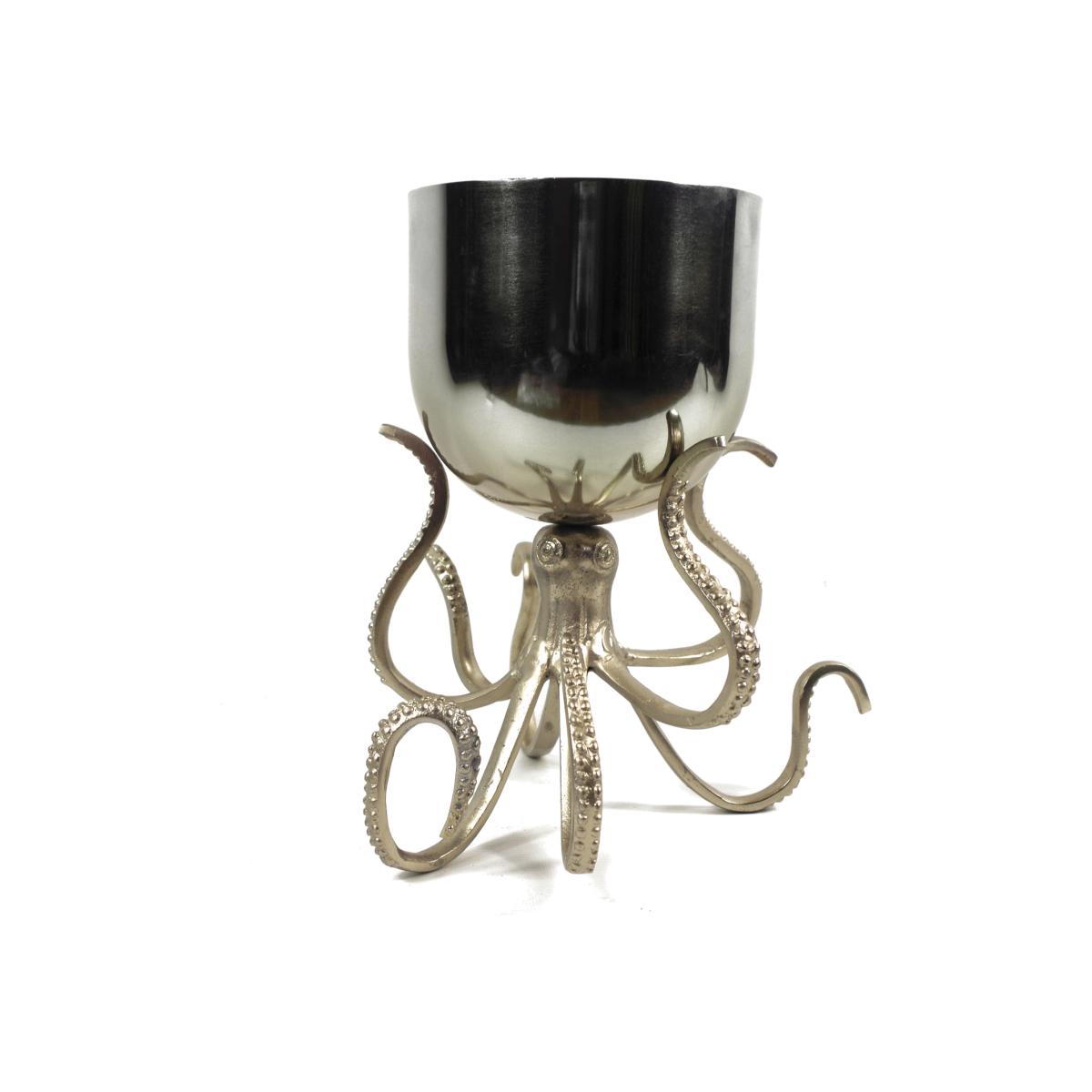 Silver Metal Octopus Bowl Style Planter - Silver