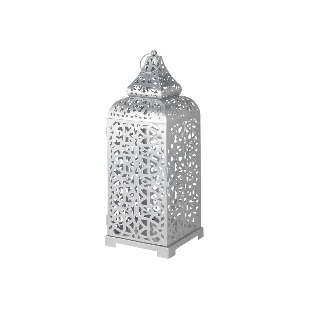 I love the silver lantern’s versatility and its ability to add a refined touch to various interiors. Its Moroccan-inspired design works particularly well in boho, Mediterranean, or eclectic schemes, but it can also bring a touch of glamour to modern or minimalist spaces when styled thoughtfully. For practical tips, consider placing it on a console table or windowsill as a focal point, and pair it with complementary metallics or natural textures for a cohesive look. Its openwork design makes it especially striking when lit, casting beautiful shadows that add warmth and ambiance, making it perfect for cosy evenings or outdoor gatherings.