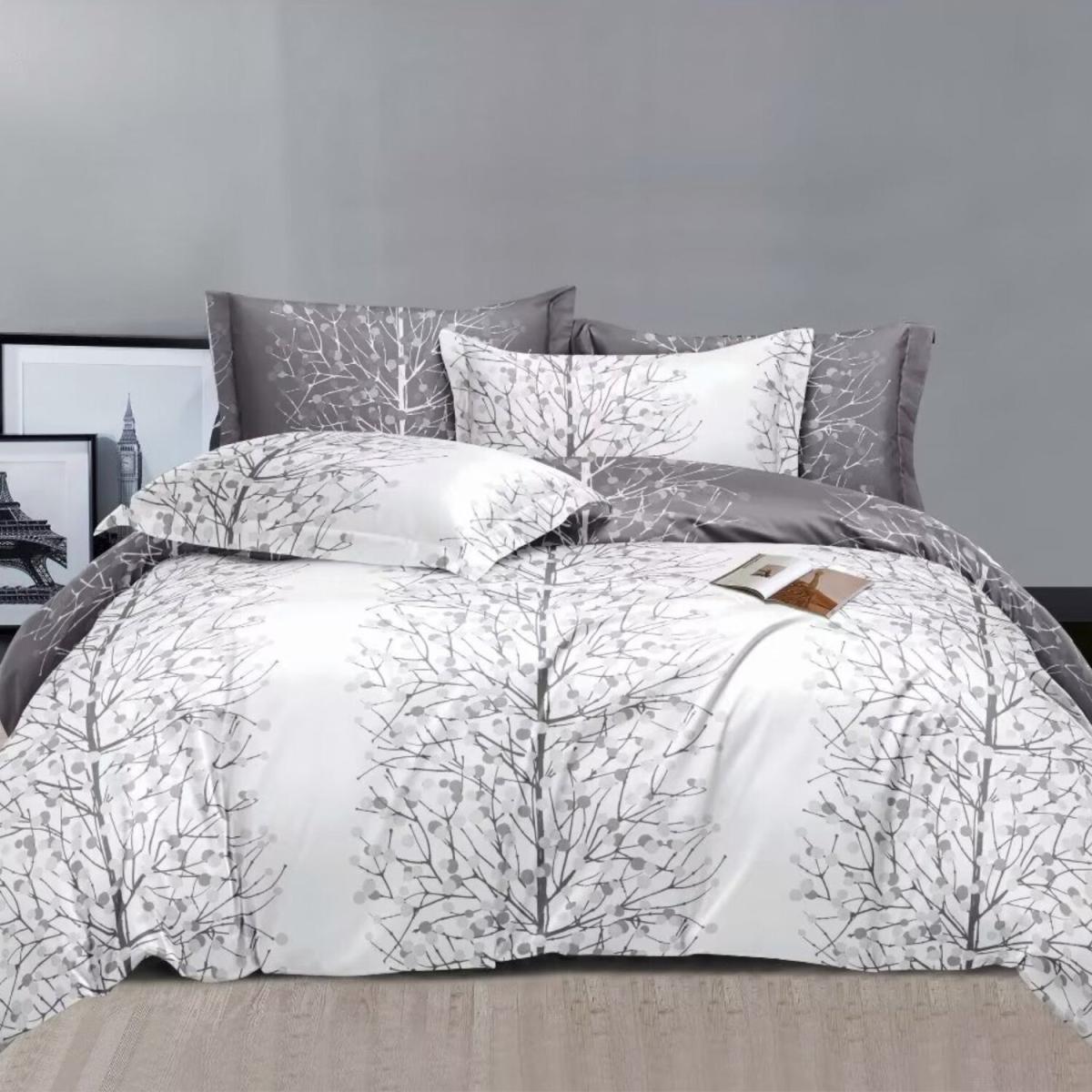 Silver Nature Printed Duvet Set - Silver / Duvet cover and 2 pillowcases / 4kg