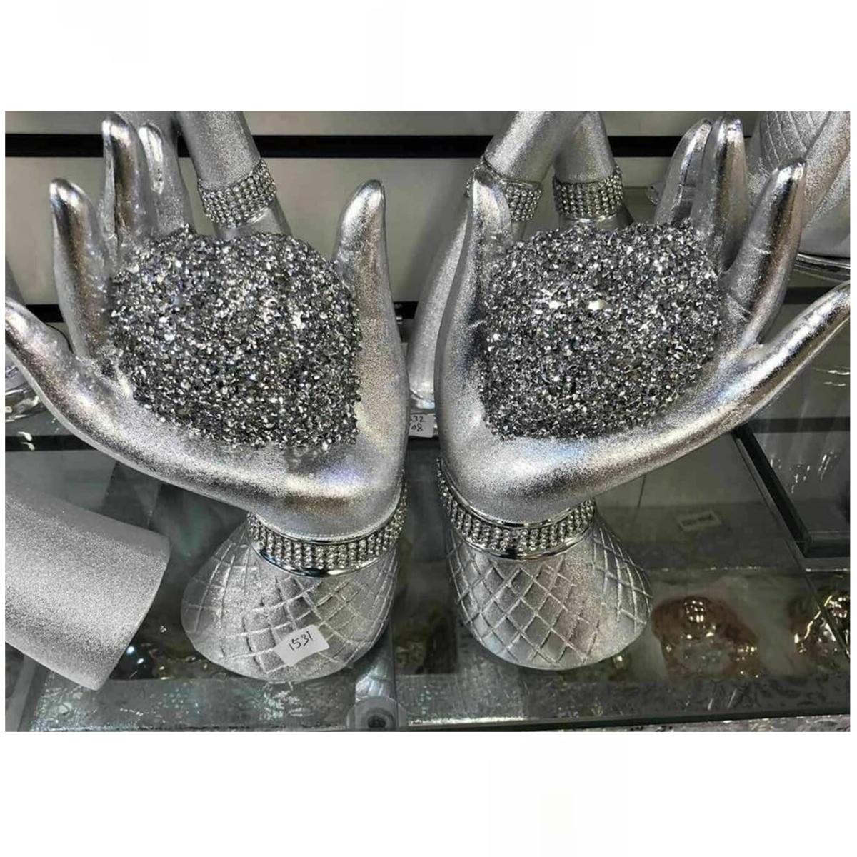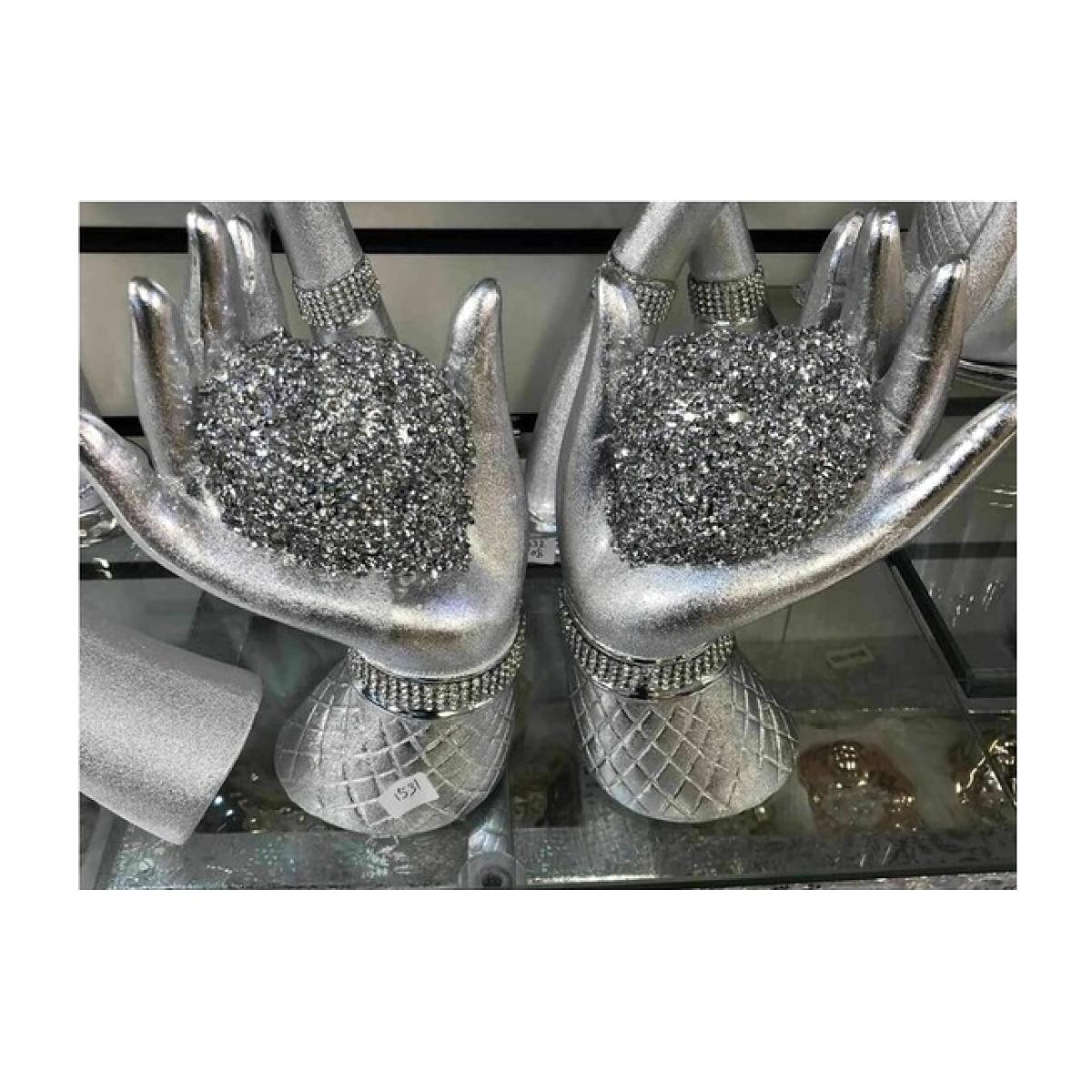 I love the silver pair of hearts in hands as a sculptural piece-its contemporary shimmer and tactile detailing make it a striking focal point. It works particularly well in modern or minimalist interiors, adding a touch of glamour without overwhelming the space. For styling, I’d place it on a mantel, side table, or open shelf with a few other metallic accents to create cohesion. Keep the surrounding decor simple to let the ornament stand out, and consider pairing it with soft textures like velvet cushions or a plush rug for a balanced look. Its versatile finish can also complement industrial or glamour-inspired schemes, making it a chic addition to various interior styles.