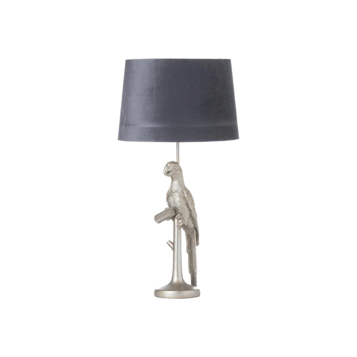 Silver Parrot Table Lamp With Grey Velvet Shade - SILVER