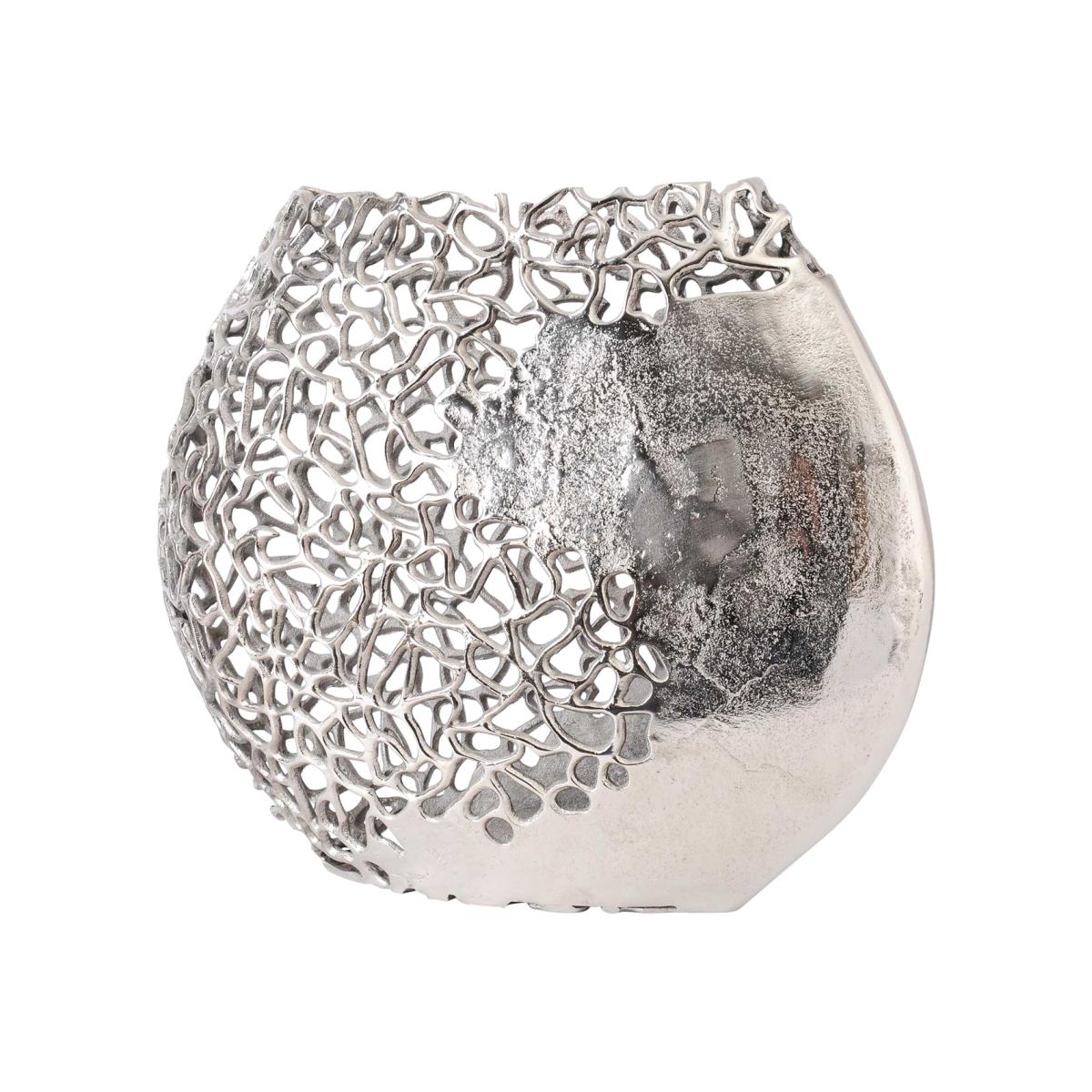 Design. A beautiful home accessory that is sure to be admired, the Silver Reef vase is crafted from silver metal with a unique cut-out design. These distinctive, organic shapes allow light to pass through, while the metallic finish adds a contemporary feel which works well with a wide range of interior styles. This large round vase will take pride of place on any table top, hearth or windowsill.