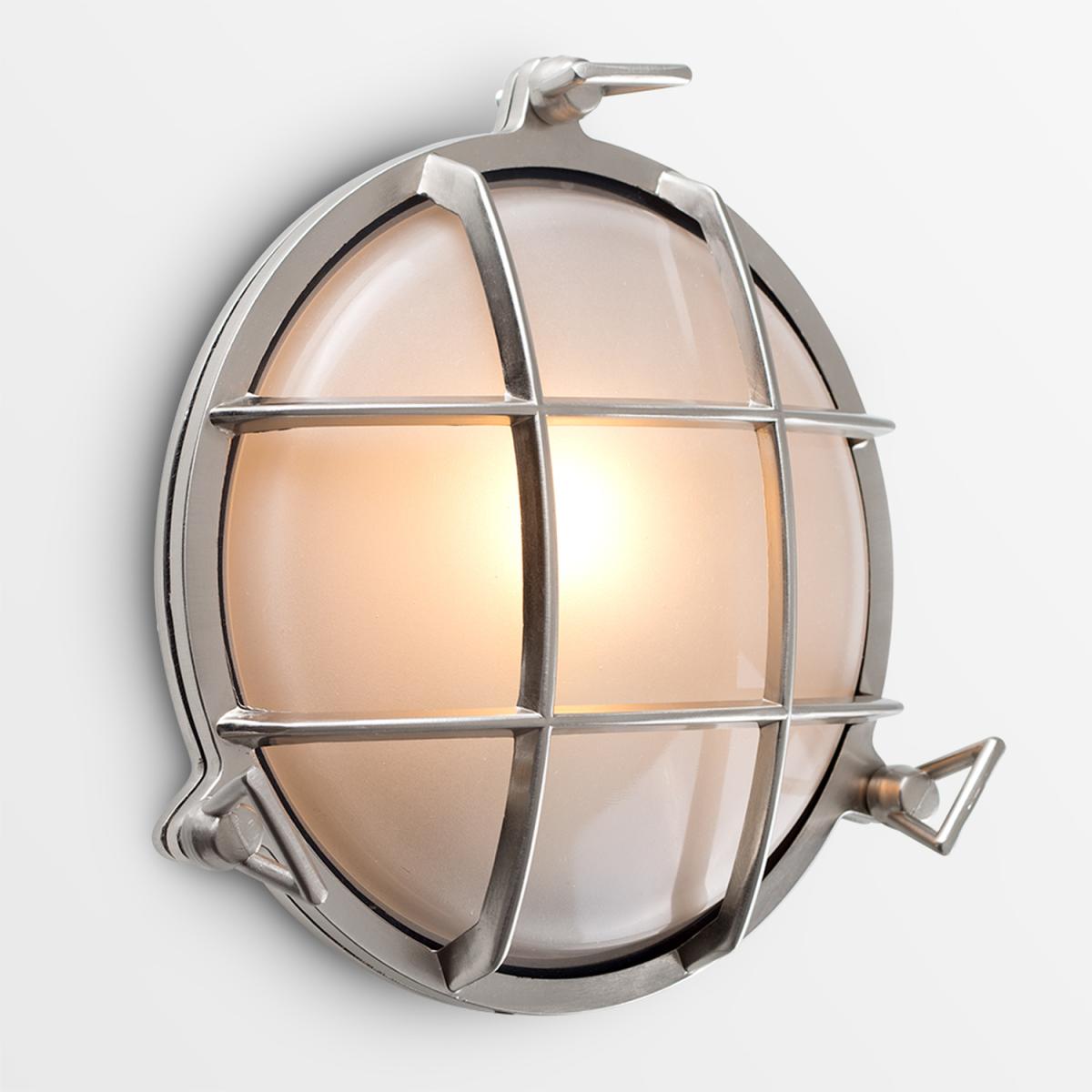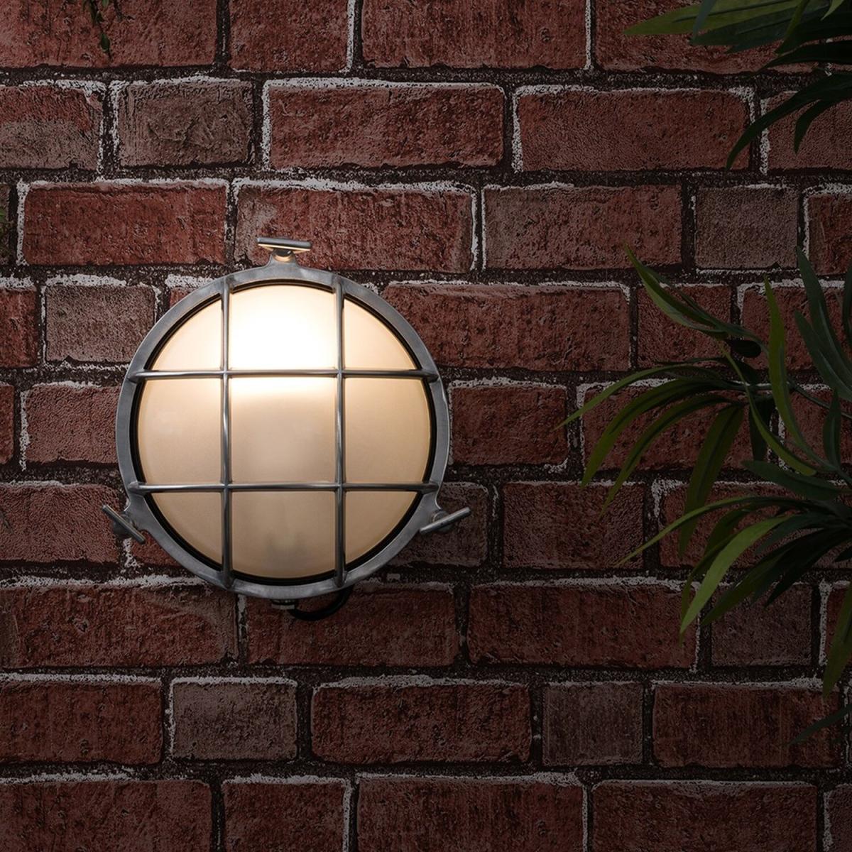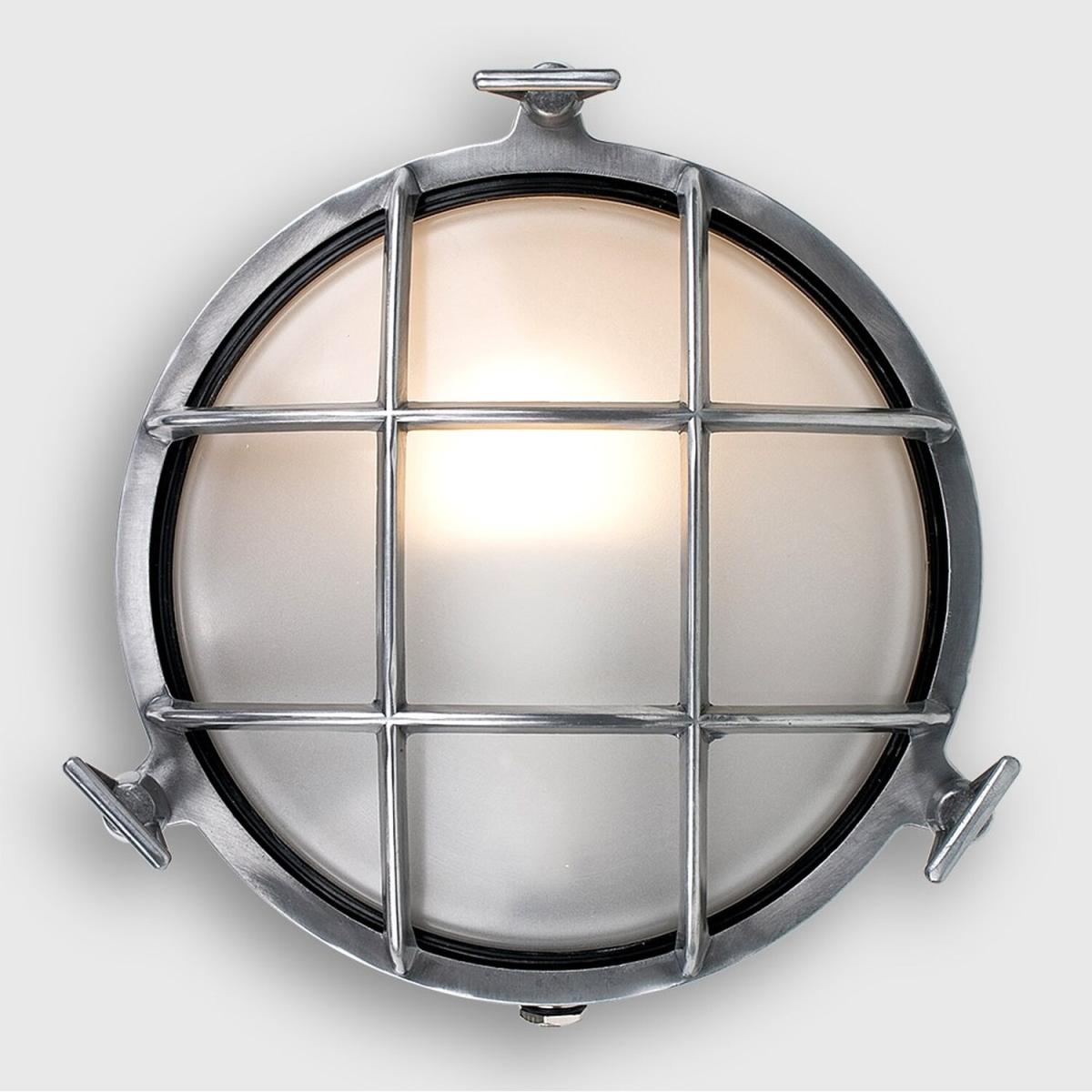 Silver Round Outdoor Garden Nautical Wall Light - Silver